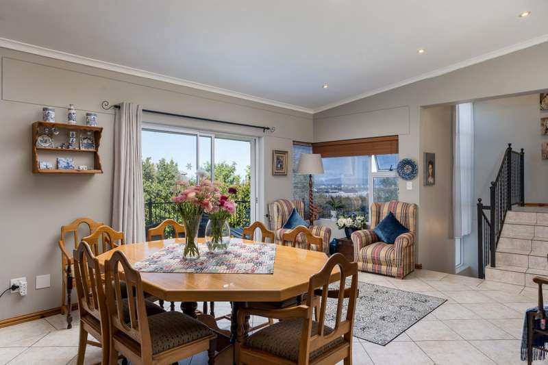 New Release in Schapenberg Security Estate Sole mandate Elegant north facing home with breathtaking views. Step into this stunning home and be enveloped by its special atmosphere. The stylish staircase sets the tone for a sophisticated living space. The spacious Open Plan living area is perfect for easy living and effortless entertaining, with the added comfort of an indoor braai. Multifunctional kitchen featuring: - Gas hob/electric oven - Granite countertops - Large pantry, Scullery & laundry - Plenty of packing space. The living area flows out onto two balconies, one north facing and one south facing, to enjoy sunshine and views from both sides of the house. The main bedroom is privately tucked away up a few stairs, and features an ensuite bathroom with double basin and Caesarstone finishes. On the opposite wing, you?ÇÖll find two bedrooms, a full family bathroom plus a separate guest toilet. A fourth bedroom is situated on a lower level with its own bathroom, kitchenette and private entrance. Ideal as a guest suite, teen pad or even an income generated rental flat. Additional Features - Extra Large Garage: With automated door for convenience and security - Beautiful Garden: Low maintenance, perfect for effortless outdoor living - Secure Estate: Peaceful living in a highly desirable and secure estate - Staff Quarters: Ideal for live-in staff or additional storage - Solar Power: 5 kW inverter with 8 solar panels for energy efficiency and cost savings These features enhance the property's value, and livability. This home offers the perfect blend of style, functionality, and versatility. Call Davy Rainier for a viewing appointment!