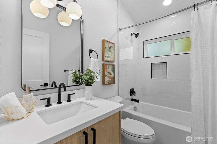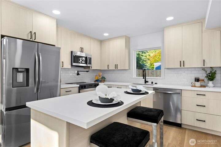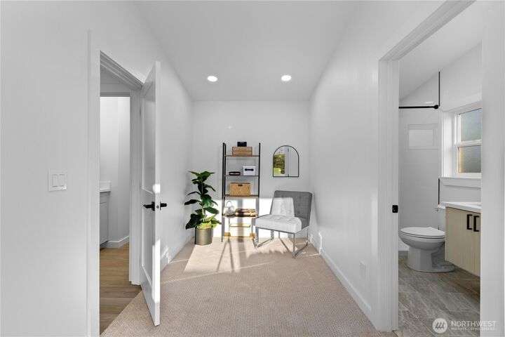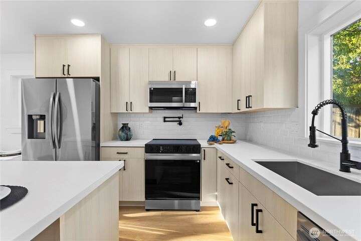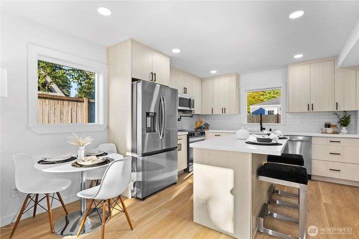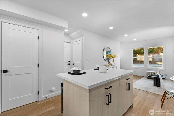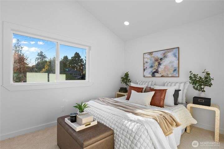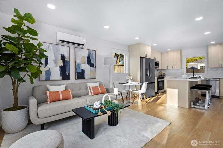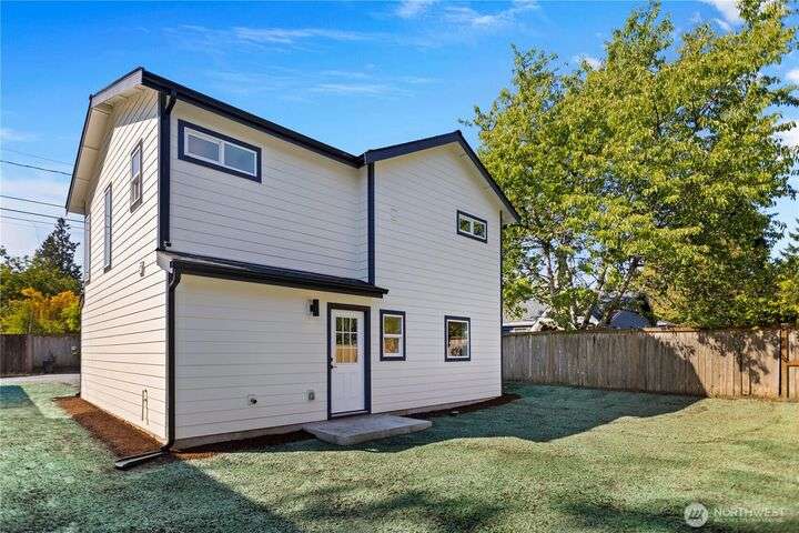 NEW CONSTRUCTION in Greenwood w/ 3 beds/2.25 baths. ASK about our preferred lender 5% interest rates or 0% Down options. Covered entry w/ open floor plan living room, dining room/ kitchen w/ LVP flooring. Kitchen w/ island/ black stainless-steel appliances/ Quartz countertops/ Pot Filler at stove. Half bath/ understairs closet storage. Vaulted ceilings throughout upper floor. Primary bedroom w/ Minisplit/ ensuite double vanity/ ¾ bathroom. 2 add’l beds/ full bath/ laundry room. Direct alley access to parking in front/1-car garage w/ EV Charger/ Electric Hybrid Water Heater Tank. Backyard access in garage to newly hydroseeded grass w/ fenced yard. EREZ floor plan/ design. Home in prime location close to schools, bus, stores/ freeway.