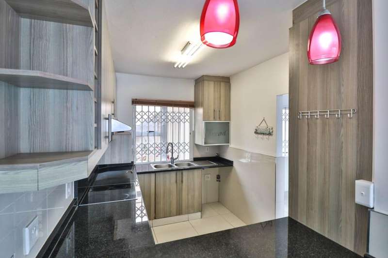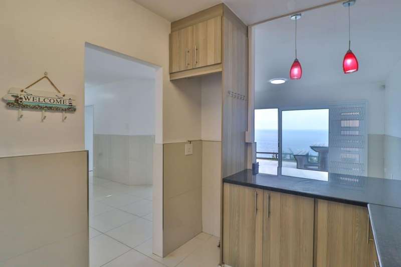 This is the PERFECT 3 bedroom holiday or starter home with magical sea views, just imagine waking up to a beautiful sunrise everyday. If the views did not do it, this property has so much more to offer, it has been completely re renovated from top to bottom. Newly tiled floors throughout, modern kitchen to make dinner while still soaking up the sea breeze. 3 Spacious bedrooms all with built in cupboards, and a large family bathroom that has modern touches. Main bedroom has a custom headrest and can accommodate king size bed, with a brand new modern en-suit, two rooms open up to your own private garden with views. All doors and windows have been replaced with aluminum and slam lock trellis doors. Wait there is more, this is also the only unit that has a door from your automotive garage straight to your own personal court yard. It also comes fitted with an alarm system and beams in the front garden. Ready for new owners to just move in and make this your home.