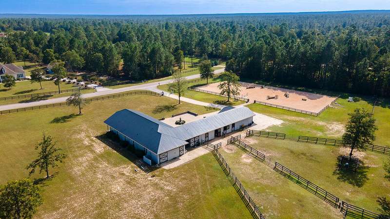 Firstlee Farm - A modern sanctuary for horse and rider. Tucked within Aiken's crown jewel, Three Runs Plantation, this exceptional property captures the essence of refined equestrian living. Spanning 2,400 acres of private trails, world-class arenas, a cross-country schooling field, and a welcoming clubhouse complete with fitness center and pool, Three Runs celebrates every discipline with effortless grace. It's not just a community—it's a lifestyle devoted to the art of horsemanship. At the heart of it all lies Firstlee Farm, a sophisticated, custom-designed huntbox by Wolf Construction, offering 1,837 square feet of beautifully crafted living space on 5.57 tranquil acres. This residence redefines contemporary country living with 2 bedrooms, 2 baths, and an open, sun-filled layout that blends luxury with simplicity. 10-foot ceilings, designer finishes, and a calm, polished aesthetic create a sense of peaceful refinement that invites you to unwind and recharge. Designed with your horses' comfort in mind, the barn features 4 elegant European-style stalls with Dutch doors, automatic waterers, fly system and fans, along with a wash/grooming stall and a heated/cooled tack room complete with sink and laundry hook-up—every detail crafted for function, flow, and elegance. Outside, individual fenced runouts lead to four irrigated pastures with heated automatic waterers, ensuring your horses enjoy year-round comfort. The 100'x200' all-weather arena, featuring sand/GGT footing and irrigation, offers a superior riding experience in any season. A gated entry ensures privacy and peace of mind, while the short hack to Three Runs Plantation's premier amenities makes this property as convenient as it is captivating. Firstlee Farm — Where beauty, balance, and equestrian excellence live in perfect stride.