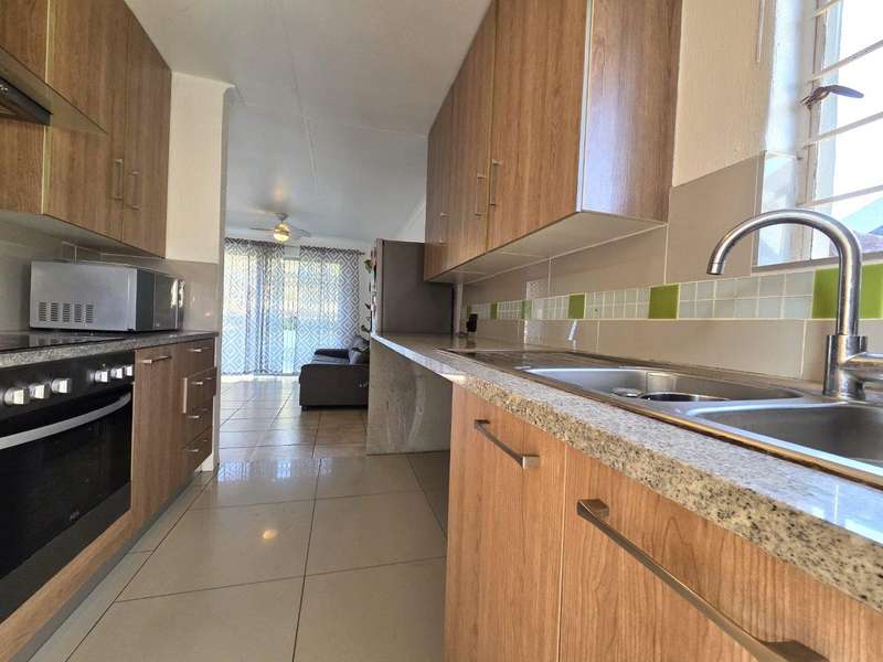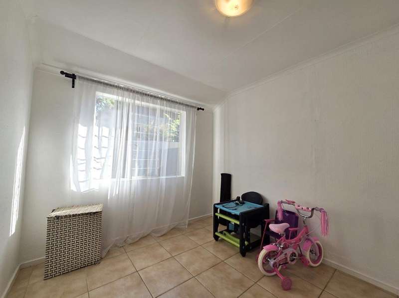 This stylish 2-bedroom simplex ticks all the boxes – child and pet friendly, secure, and designed for modern living. Private gardens front and back – perfect for kids, pets, or quiet relaxation. Modern kitchen with granite tops, plenty of cupboards, and space for 3 undercounter appliances and a fridge. 2 Spacious bedrooms with ample wardrobes. The bathroom features a stylish freestanding bath as well as a shower. The garage, with automated door, plus a sliding door at the back leads directly into the back yard/garden. An extra parking in front of the garage. The inviting stoep begs to be transformed into a full covered patio where you can unwind while enjoying the lush trees and abundant birdlife. All this within a sought-after complex offering: Beautiful communal gardens Sparkling pool Braai facilities Entertainment area & clubhouse 24 Hour security with guards always on duty and surrounded by other complexes, makes this a super secure one. A perfect blend of style, comfort and lifestyle – this simplex won’t be on the market for long! Additional costs: Security: R622,32 Reserve Fund: R471,22