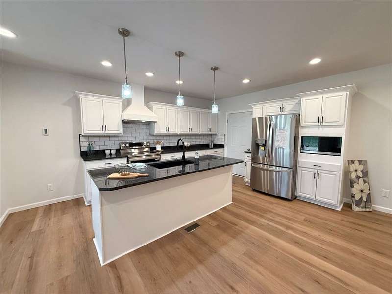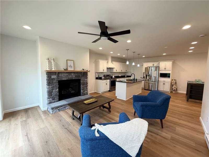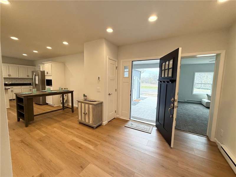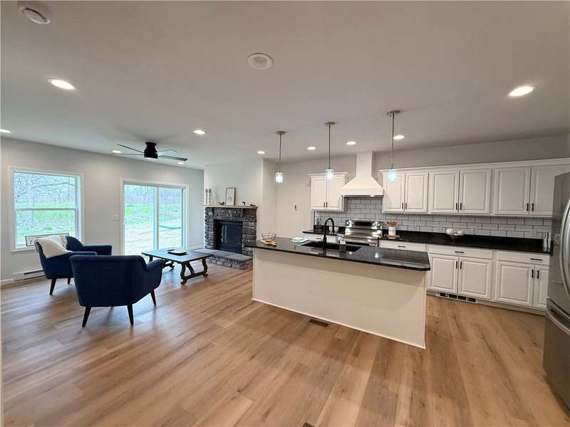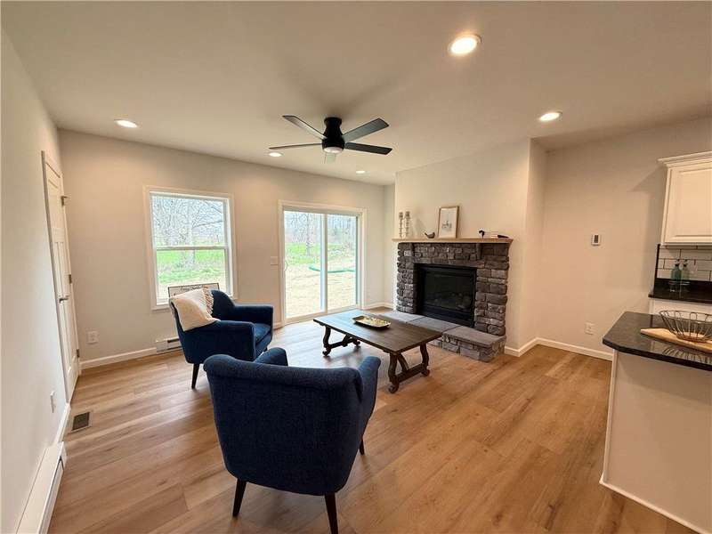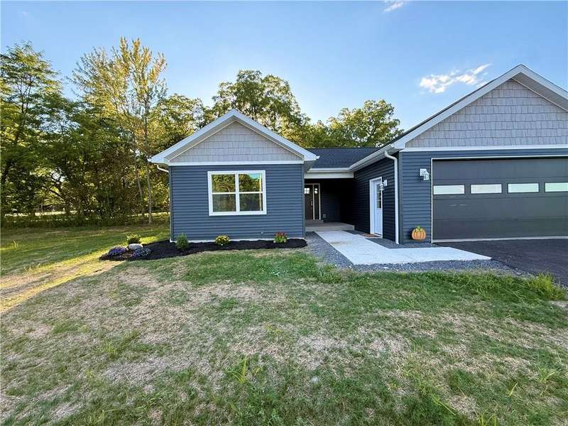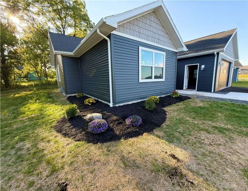 Step into comfort and convenience with this brand-new, charming Ranch-style home in the newly developed cul-de-sac of Mae's Landing, located in the desirable Town of Canandaigua. Thoughtfully designed and beautifully finished, this home offers three spacious bedrooms including a serene owner's suite with a private bath, plus a second full bath for guests or family. The open-concept eat-in kitchen is a chef's dream, featuring quartz countertops, a full suite of appliances, and a stylish breakfast bar, all accented by luxury vinyl plank flooring that runs throughout the home. The generous living room is warm and inviting, centered around a cozy gas fireplace with glass sliding doors that lead to a possible patio/ or future seating area?perfect for relaxing or entertaining outdoors. A versatile bonus room provides the flexibility to create a home office, playroom, or extra guest space. First floor laundry is another added convenience to everyday living. The full basement with superior walls and a walk-out door offers incredible potential for storage or future finishing with exterior walk out. An attached two-car garage completes the package. Located in a peaceful cul-de-sac with no HOA fees, this home is just a short walk to downtown shops, banks, and more?all while enjoying the benefits of Town of Canandaigua taxes. Don't miss the opportunity to make this beautiful home yours!
