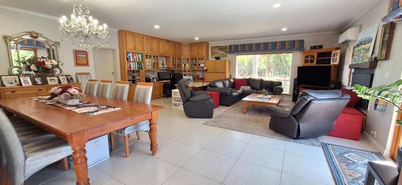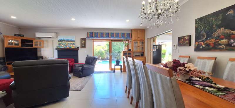 Situated in a quiet cul-de-sac in one of Robertson?ÇÖs most desirable neighborhoods, this stunning family home offers comfort, versatility, and modern conveniences. With three bedrooms and two bathrooms, plus a separate flatlet, this property is perfect for multi-living. The flatlet features its own kitchen/lounge area, bedroom, and bathroom, with the flexibility of being accessed from the main house or via its private entrance. Designed for easy living, the main home boasts two spacious living areas, one of which includes built-in cupboards?Çöideal for a study. An indoor braai and air conditioning make entertaining a breeze, while stacking doors open to the pool and outdoor entertainment area, perfect for summer gatherings. The fabulous new kitchen is a true showstopper, fitted with a gas hob and electric oven, while a separate scullery provides ample space for appliances. The double garage offers direct home access, and an additional carport accommodates two vehicles or a caravan. This home is equipped with an inverter system, solar panels, and water storage tanks, ensuring efficiency and sustainability. Plus, a mini tennis court adds a fantastic fun feature for both kids and tennis enthusiasts. Move-in ready and waiting for its next family, this home is the perfect place to create lasting memories.