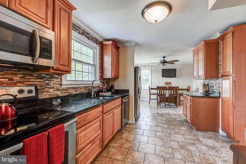 What a great value in 21234! 4 BR, 2 full bath home with carport and in awesome convenient location! Large updated eat-in kitchen with granite countertops, ceramic tile, stone backsplash and pantry cabinet. Main level en-suite bedroom which makes this easy living. 3 bedrooms upstairs with full bath. Lower level is newly finished with great space for a play room, office or whatever you like. Laundry area includes washer/dryer. Beautiful side covered porch is perfect for entertaining or a quiet dinner. Yard is perfect for gatherings, gardening or a restful nap . This home is so conveniently located with easy access to restaurants, mass transit, pharmacy and local library.