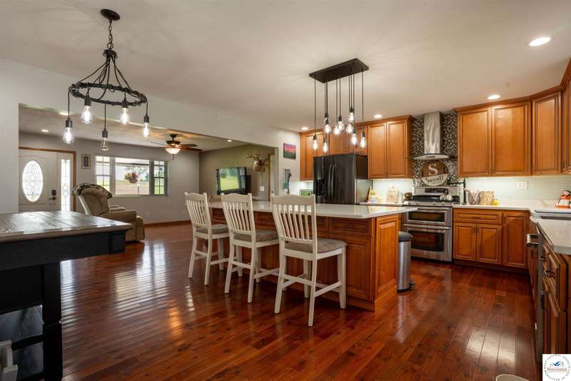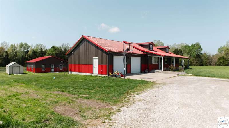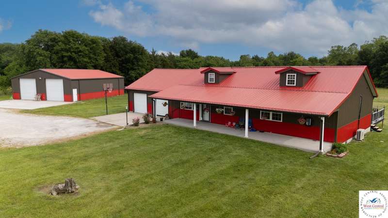 This gorgeous country home has everything you've been looking for! Luxury was high on the list when this was built. Sitting on a beautiful 4.5+/- acres, this estate is made up of over 2000 square feet of living space. Walk in and enjoy all of the natural light in this open concept Living, dining and kitchen, highlighting the hardwood floors, beautiful cabinets with high end countertops and backsplash. Down a short hall past a full bathroom to not just one, but two en suite bedrooms! The master bedroom is very spacious and gives you a great view of your acreage. The jr. en suite is ready for you little one or perfect for hosting guest. Make your way upstairs to the HUGE 3rd bedroom (could be split into 2!) that has tons of room for little ones to play and has 1/2 bath conveniently located for them. Downstairs you will see the oversized attached garage located just off of the living/kitchen. Don't worry, plenty of room in the other buildings for all of the toys so that this can be for everyday parking! A newer 36x36 utility building finished off very nicely inside, begging to become your next hobby shop! Would make a perfect woodshop! Head on over to the red iron 50x50 with 2- 12x12 doors just waiting for a car lift and Camper to be put in! (also stubbed for 1/2 bath!) Conveniently located just minutes outside of Cole Camp this home is close to golf, town and just minutes from both Truman and Lake of the Ozarks!! Contact today for a private showing.