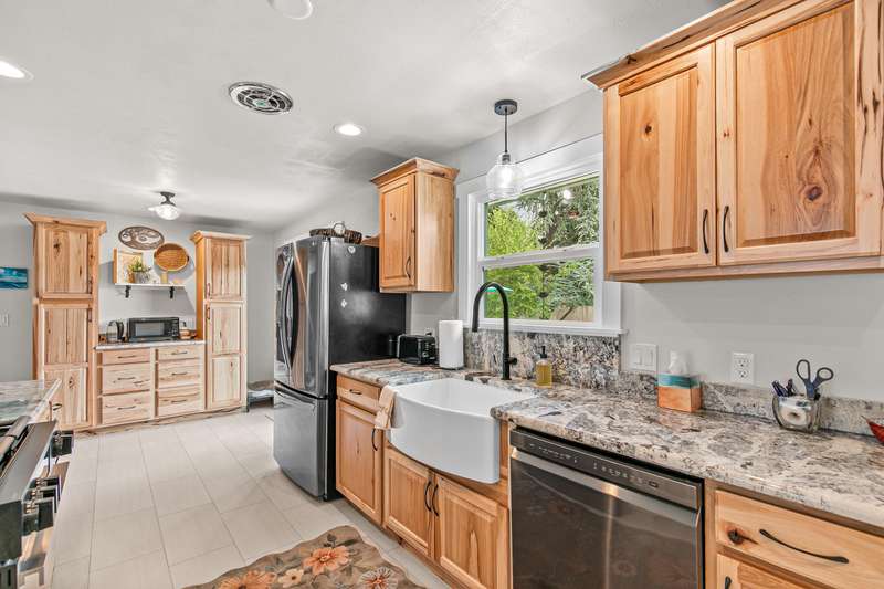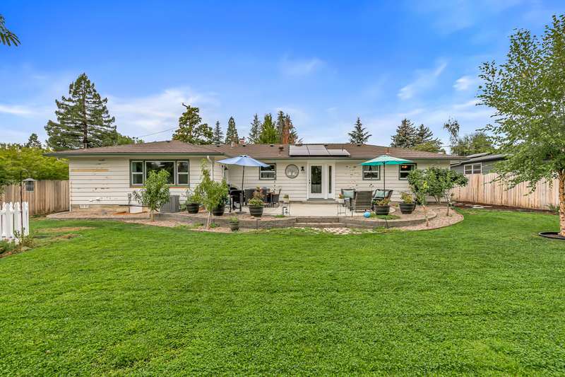 Welcome to this beautifully updated 3-bed, 2-bath home offering 1,505sqft of comfortable living on a generous lot. Thoughtfully maintained and improved, the property features new solar panels, a fully remodeled kitchen (2024), newer HVAC and water heater (2022), fresh interior paint and numerous exterior upgrades including fencing, irrigation, downspouts, and a charming courtyard. Outdoor living shines with a spacious patio, updated front walkway, and a picket-fenced garden with arbor, complemented by new landscaping and fruit trees. A move-in ready blend of comfort, efficiency, and style.