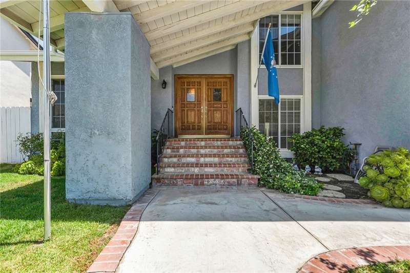 Amazing mid century modern home in Simi Valley, 2-story, 5 bedrooms (1 downstairs, 4 upstairs) 3 bathrooms (1 with walk-in shower downstairs, and 2 full upstairs). As you enter the home, you'll see the beautiful formal living room with huge front picture window and cozy fireplace. From there, you will see the large dining area for those big family gatherings located next to the kitchen. The large open kitchen is very spacious with granite counters and solid wood cabinetry and beautiful bay window. Off the kitchen you'll find a wonderful family room with a second fireplace, and sliding glass doors that open out to the entertainers backyard with private pool and spa. There's also a newly re-built covered patio and grassy area, just the right size to have a little grass without a ton of maintenance. The home also has a top of the line, whole-house water purification system and is located in the coveted Mountain Valley association area, which includes an olympic size community pool, tennis courts, private park, community clubhouse and picnic area with very low HOA fees! This home is a true GEM in Simi Valley: Great Location! Great home! Great neighborhood! Great price!