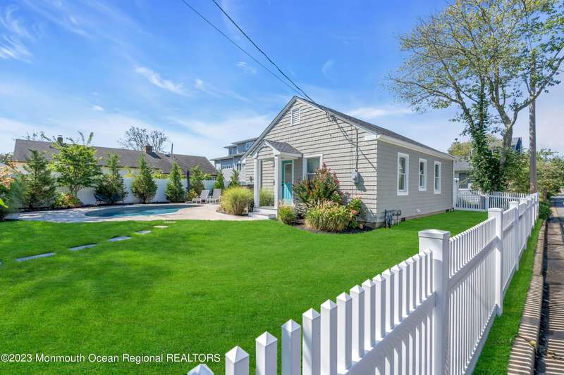 Charming Cottage nestled on a tranquil lane just moments to Town, Beach, Marina, and School. This meticulously renovated gem, which underwent a year-long top-to-bottom transformation in 2021, offers many stunning features, including pristine hardwood floors throughout. A separate outbuilding provides versatile space, ideal for accommodating extended family, guests, or creating your private office oasis. There are more luxurious amenities outside, including a high-end saltwater pool, an inviting patio, a cozy fire pit, gas grill, landscape lighting and meticulously manicured grounds. This residence is thoughtfully furnished to provide you with a seamless move-in experience. Most furnishings are available. Don't miss your chance to make this exquisite house your new home
