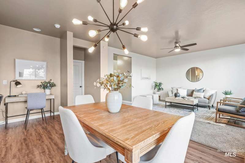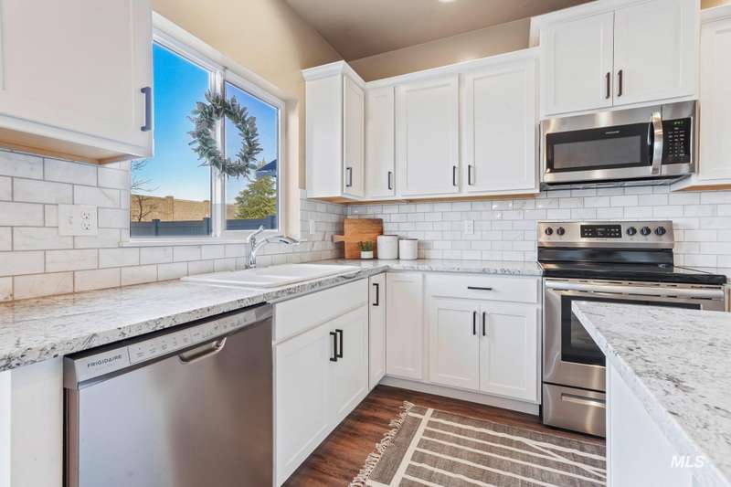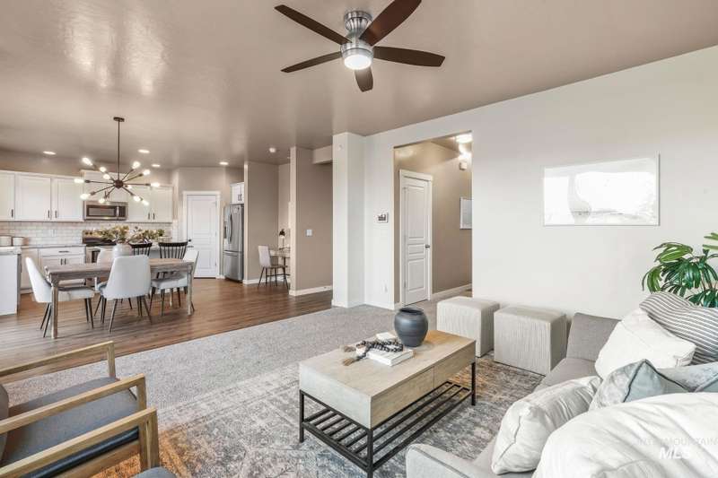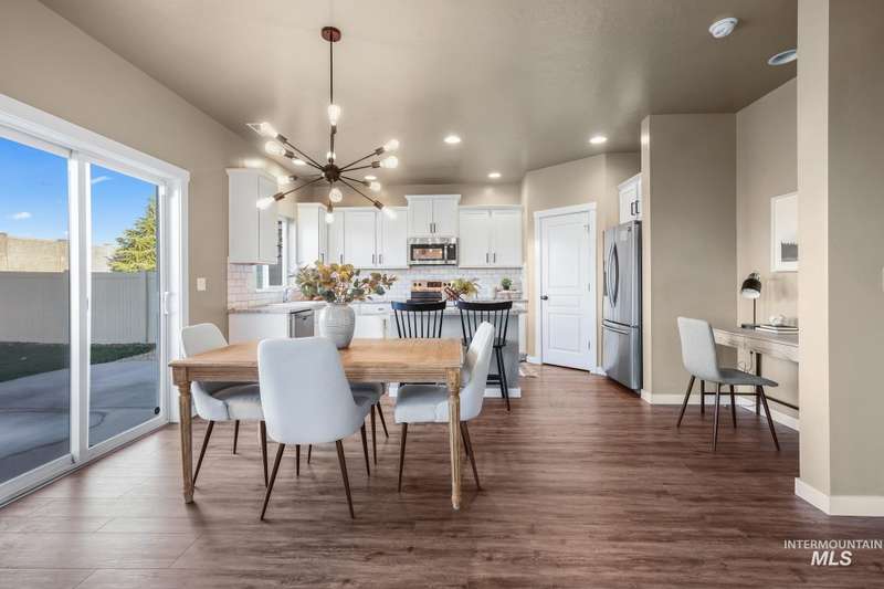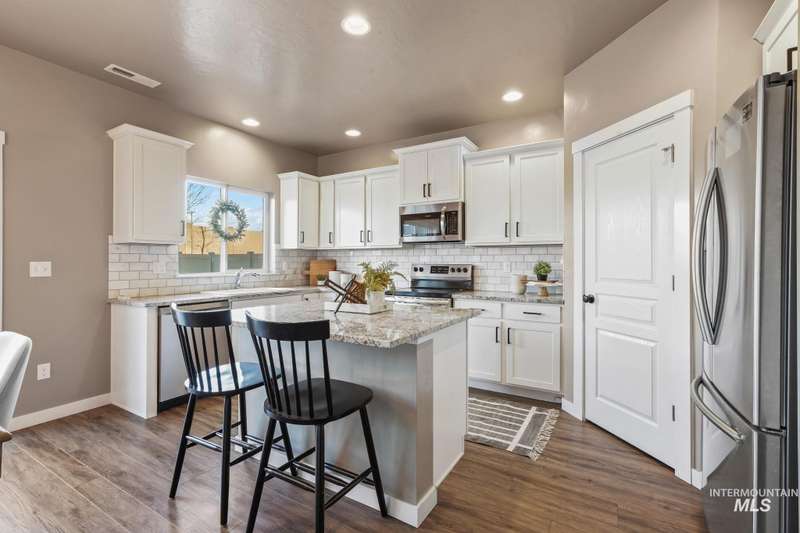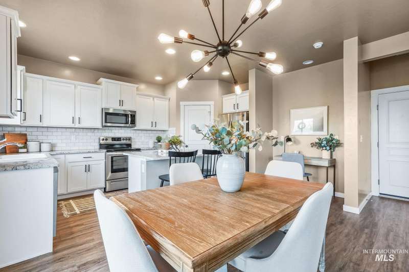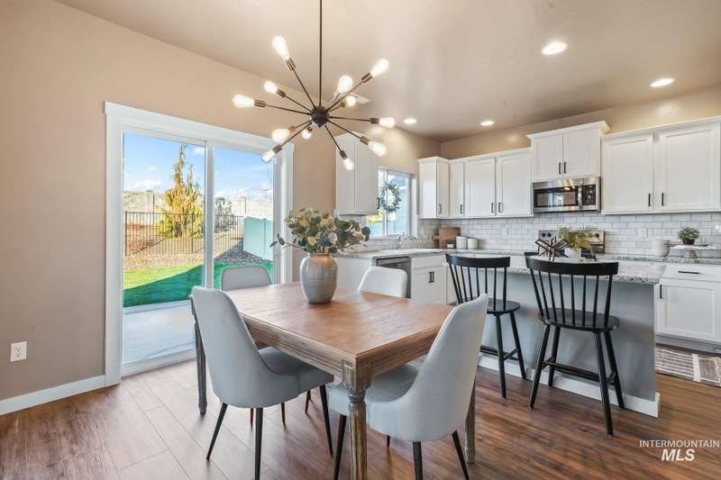 Built in 2018, this 4 bed, 2.5 bath home offers 1,841 sq ft of thoughtfully designed living in Meridian’s desirable Trilogy subdivision. Soaring vaulted ceilings, open-concept spaces, and natural light create a bright and inviting main level, anchored by a gourmet kitchen with granite countertops, stainless steel appliances, a large island, tile backsplash, and walk-in pantry. Upstairs, you’ll find all four bedrooms, including a spacious primary suite with dual vanities, walk-in closet, and privacy from secondary rooms. The fenced backyard is perfect for relaxing or entertaining with an extended patio, dedicated grill/smoker pad, and irrigation ready for raised garden beds. Added privacy with no front or rear neighbors. Community features low HOA dues while offering proximity to Costco, schools, restaurants, parks, and shopping. A modern, move-in ready home with a functional layout and upgraded finishes—perfect for a variety of lifestyles and investment opportunities.