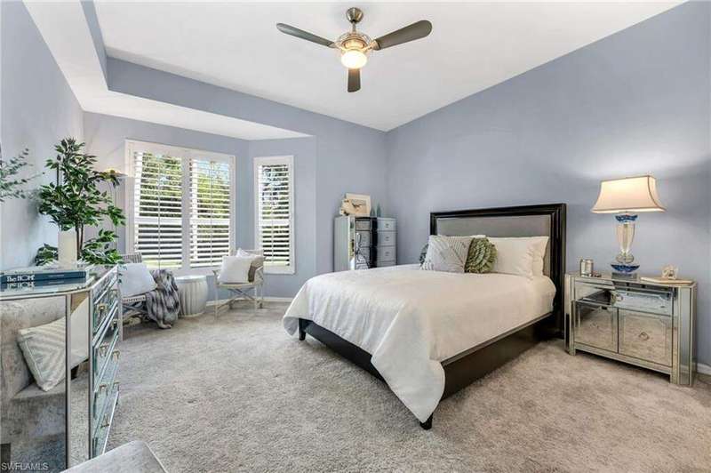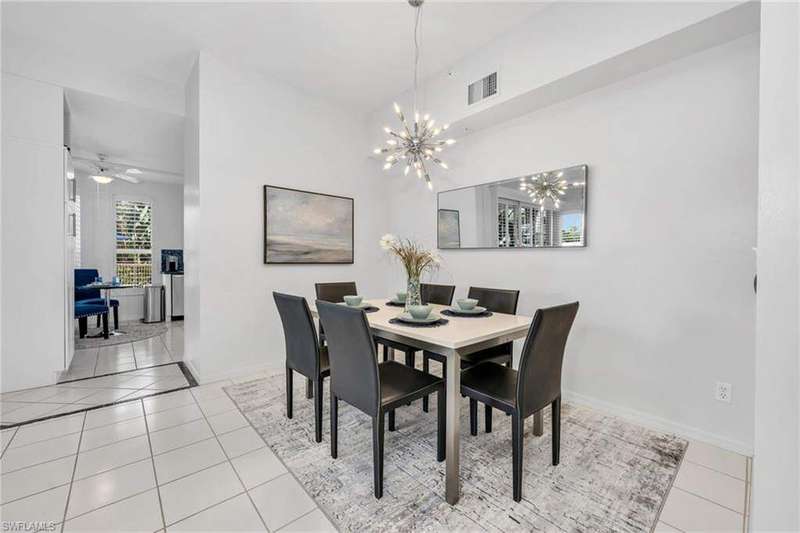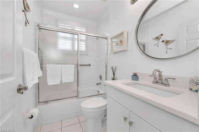 This delightful property offers a serene escape with views of a spacious landscaped area adorned with palm trees, perfect for outdoor dining or relaxation from your private lanai. Recently updated, this home boasts freshly painted light colors and all new LED lighting for a bright and modern appeal with furnishings provided by some of the area's top designers. A restful primary suite offers a spacious bedroom, separate tub & shower, and walk-in closet. A guest room with its own bath provides privacy for guests and the den has been thoughtfully designed to serve as a peaceful 3rd bedroom. Adjacent to the great room, you'll find the kitchen is a chef's delight with top-of-the-line Bosch appliances. This is the ideal retreat for those looking to enjoy Florida living at its finest! This special property features upgraded bathrooms, a renovated kitchen with pantry, sparkling tile backsplash, and stone counters. Additionally, a whole house Kinetico water treatment system ensures the highest standard of living. Residents have access to a 34-acre private beach park on Big Hickory Island, tennis courts, bocce and pickleball facilities, a sailing club, canoe and kayak center, and a state-of-the-art fitness center. Experience the epitome of elegance and convenience in this turnkey property, where the comforts of Florida living await. Situated near a tropical pool complete with a water feature and spa, you'll enjoy resort-style living right at home.