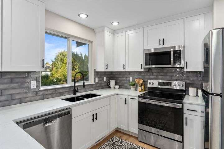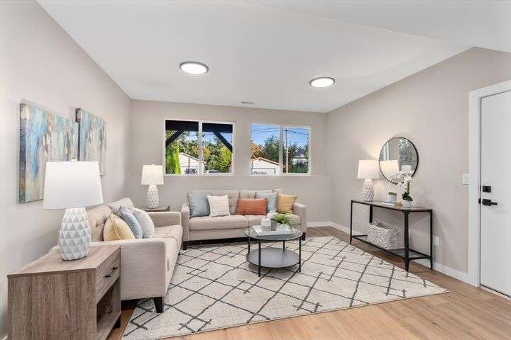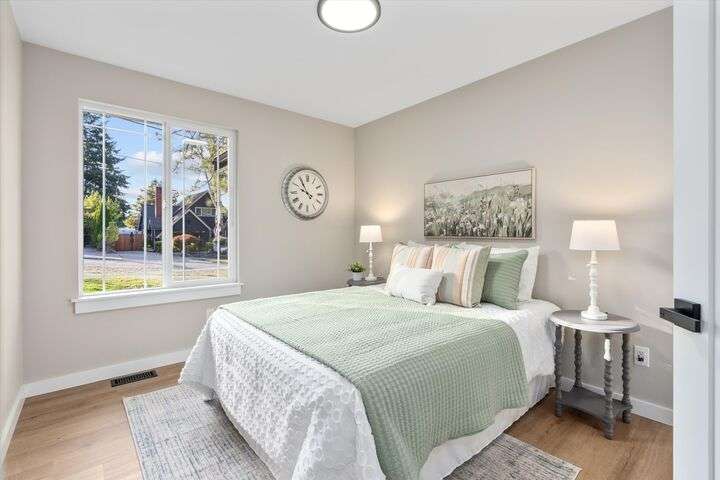 Historic Rucker Hill! Gorgeous rambler w/daylight-basement & 672sf garage on double lot. $175K+ of improvements include rebuilt front porch & back deck, luxury vinyl plank flooring throughout, new cabinetry w/quartz counters, interior/exterior paint, lighting, doors, trim, sinks, plumbing fixtures, hardware, water heater & furnace. Stainless steel appliances, gas fireplace & newer roof complete the package. Move in ready! Enjoy summer breezes, stunning sunsets + partial Sound, Mtn & Port views from the covered porch & living room. Excellent DADU potential w/50-ft alley access & ample parking. Superb location, minutes to downtown, parks, schools, Providence, Everett Station, I-5, shopping, dining, theatres, marina, sports facilities & more.