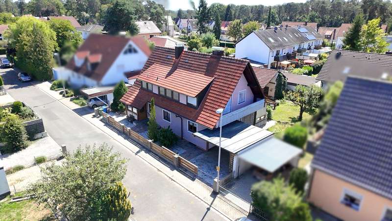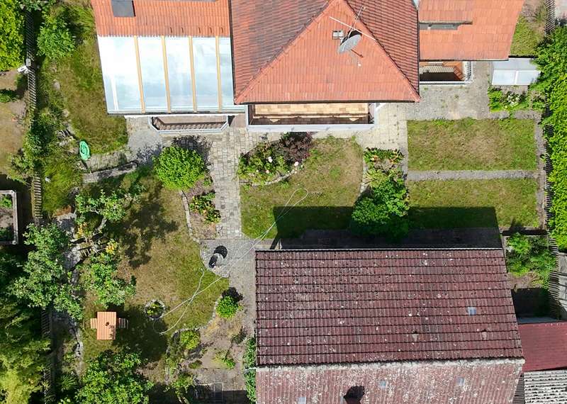 Charming detached house with garden and pretty outbuilding in Dechsendorf - 3 minutes by bike to the lake! This spacious detached house, built in 1958, extended in 1961 and 1976, offers enough space for a family with a living area of approx. 181 sqm. The plot with the wonderful garden extends over approx. 592 sqm. There is also a very idyllic outbuilding on the property with a main room of approx. 39 sqm and a further storage room (approx. 8.5 sqm). A workshop was once set up here. The garden offers plenty of green space to play and run around. Originally built in 1958 as a semi-detached house, part of the second half was demolished in 1995, insulated accordingly and extended and aligned with the aim of a detached single-family house (or optionally a two-family house). The property comprises a total of 6 rooms, including 5 offices or bedrooms, which can be used flexibly. The living/dining and kitchen area is kept open across the corner in an L-shape. In the dining area in the transition to the living area, there is a pretty tiled stove that creates a cozy atmosphere. There is underfloor heating in the living room, which is electrically powered by the PV system. There is a full bathroom on both the ground floor and the upper floor, which meet the needs of a family. A comprehensive modernization was carried out in 2000. Particular attention was paid to the conversion of the heating system in 2003, which involved switching from oil heating to a more efficient gas heating system. Heat is currently supplied by a central heating system, which ensures even and comfortable heat distribution in all rooms. Only in the living room was additional underfloor heating installed in 2006, which is operated electrically via the PV system. The property is well maintained, ready to move into and offers a wide range of design options. Potential buyers have the opportunity to modernize the interior according to their individual taste and personal requirements. Also worth mentioning are the two balconies and the beautiful covered terrace in front of the living area, which not only offer additional outdoor space, but also the opportunity to enjoy the day outdoors. The property is located in a quiet residential street with mostly residential traffic. The house has been cleared and the layout of the rooms is functional and family-oriented, with a focus on good usability and a flexible living concept. We cordially invite you to discover the possibilities of this house for yourself during a viewing and get an idea of how your dream home can be realized here. We would be happy to arrange a viewing appointment with you - we look forward to seeing you!