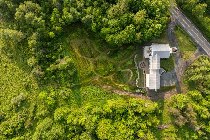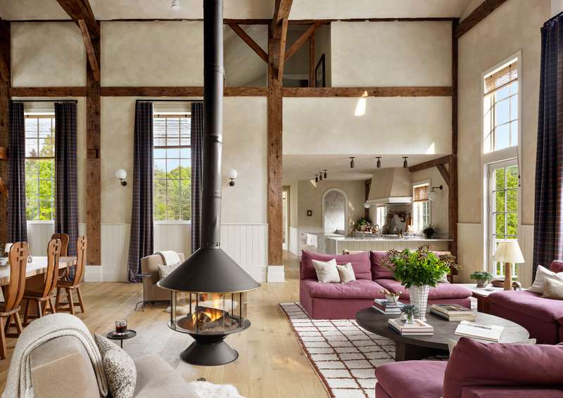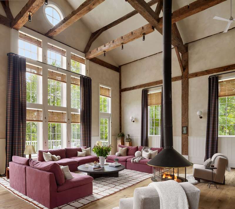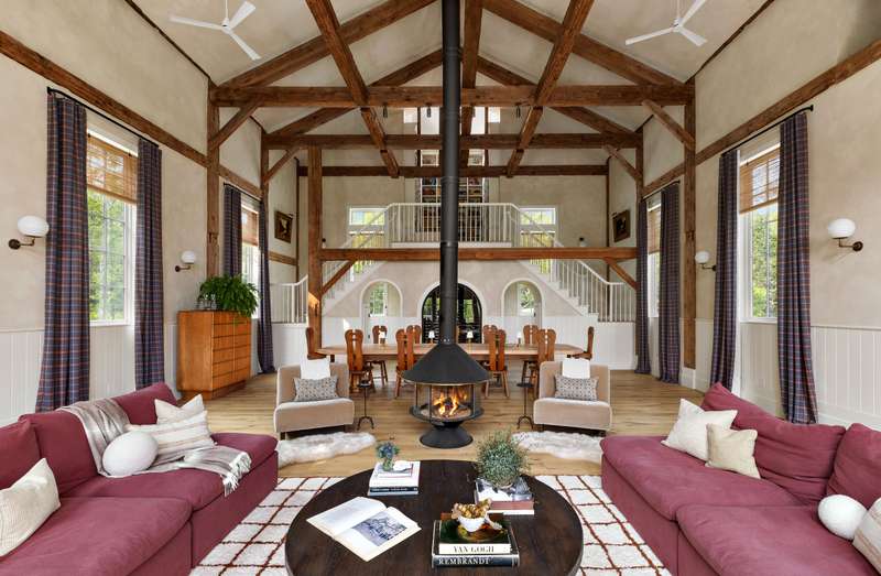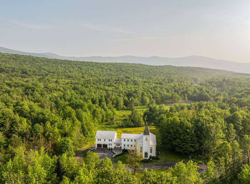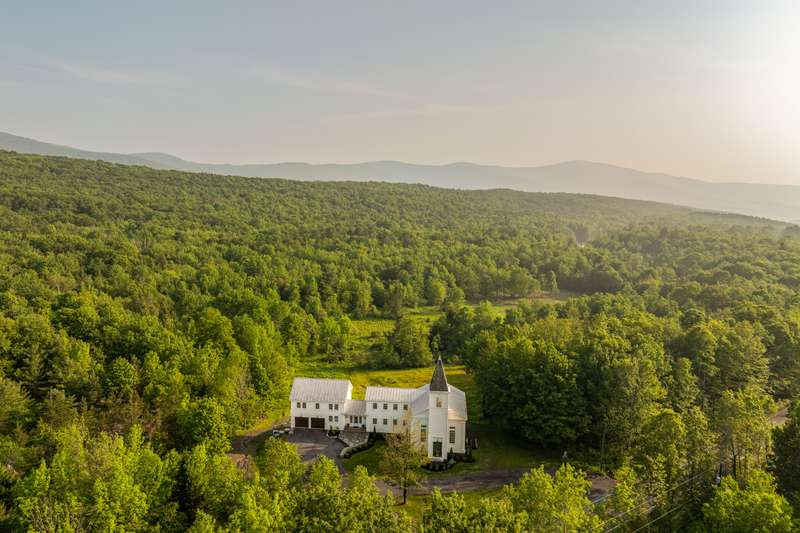 Welcome to Potter Mountain House, a masterfully reimagined Greek Revival church turned luxury designer estate. The original timber-framed structure was constructed in 1837 as the Manorkill Methodist Church, serving its community for over a century before being carefully dismantled and relocated to its current site in Gilboa, NY. Now sited on 37 acres with sweeping Catskill Mountain views, the building began its two-year transformation in 2023 by the boutique design/build firm ICDT Studio into a breathtaking 6,242-square-foot residencehonoring its historic soul while layering in a refined, design-forward sensibility. The result is a one-of-a-kind architectural offering that balances reverence for the past with an intentional, contemporary design ethos.Inside, every detail delivers. The three finished levels are anchored by a soaring Great Room featuring the restored original timber frame, hand-hewn beams, and a full wall of windows that frame the panoramic mountain views. A round, sculptural gas fireplace adds warmth and ambiance between the living and dining spaces, while the chef's kitchen features a 48'' AGA induction range, Fisher & Paykel appliances, Waterworks fixtures, and a stunning stone-clad island. A walk-in pantry accented by reclaimed wood beams and lined with Zellige tile completes the space. The spacious, open layout provides a striking balance of style and function for both daily living and entertaining.Ascending a symmetrical dual staircase, the Great Room opens into a dramatic library loft housed within the home's original church cupola, crowned by an 18-foot long, multi-point glass chandelier and custom floor-to-ceiling bookcases. Just off the dining area, a glass-fronted, 625-bottle refrigerated wine room is enclosed by custom arched iron doors. The home offers five bedrooms and four-and-a-half exquisitely finished baths, each appointed with radiant heat, curated tilework, and an artful mix of stone and marble. The secluded primary suite occupies its own private wing and includes a spa-like bath with soaking tub, dual showers, Bardiglio marble, and double vanities framed by custom glass partitions. The walkout lower level features a secondary living room with wet bar, two guest quarters, built-in bunk room, and a spacious laundry suite with double washers and dryers. Lime-washed walls, wide-plank white oak flooring, and bespoke lighting carry a sense of quiet luxury throughout.Outside, multiple entertaining terraces and an expansive rear deck take full advantage of the natural surroundings, while a stream and seasonal waterfalls enhance the sense of tranquility. Additional features include an attached, heated, two-car garage, all-purpose mudroom, and a backyard master plan already prepared with plans for a future pool. Just 20 minutes from Windham Mountain Club, under an hour to Hudson and Albany, and a little over two hours from NYC, Potter Mountain House offers sanctuary, scale, and elevated design. A fully furnished option is also available, providing a true turnkey experience for effortless move-in. Unlike anything else on the marketdistinctive, historic, and telling a story entirely its own.