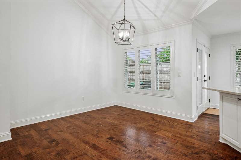 Light and bright with an open floor plan and lots of windows! High ceilings in the living and dining rooms give a sense of additional space. Tastefully remodeled kitchen and baths! A cook's kitchen with granite counters, oversized island and stainless appliances including a refrigerator that will stay with the property. Easy access through French doors to the oversized Pavestone patio ideal for private outdoor living and casual dining. The primary suite offers a beautiful double sinked vanity and oversized shower plus extra large closet. Many, many updates including richly stained wood floors, fresh paint, recessed lighting, replaced double paned windows, Plantation shutters, 2021 Lennox 16 Seer complete HVAC, backyard gutter discharge line and French drains. Truly a jewel box for those desiring a low maintenance, lock and leave opportunity!Conveniently located near shopping, restaurants and major highways. This is a ten - move in ready!!