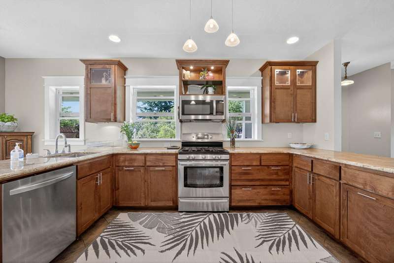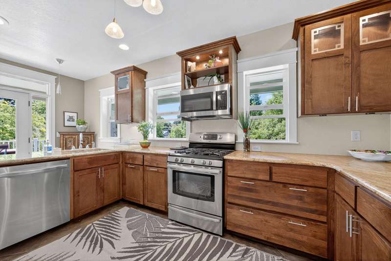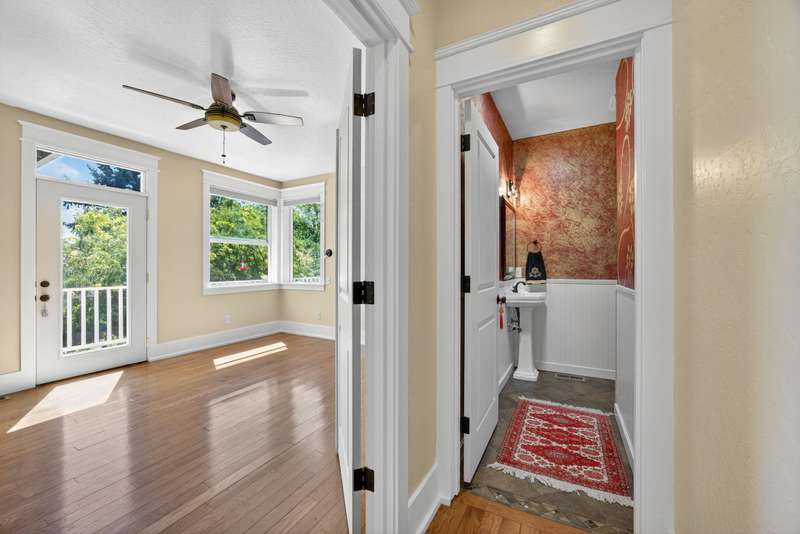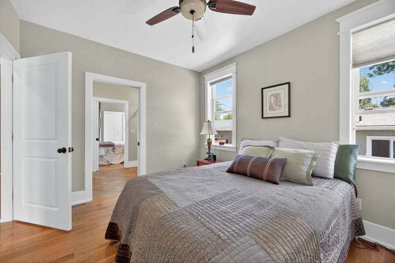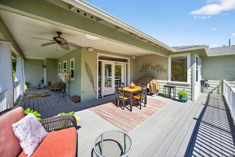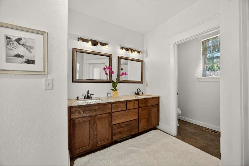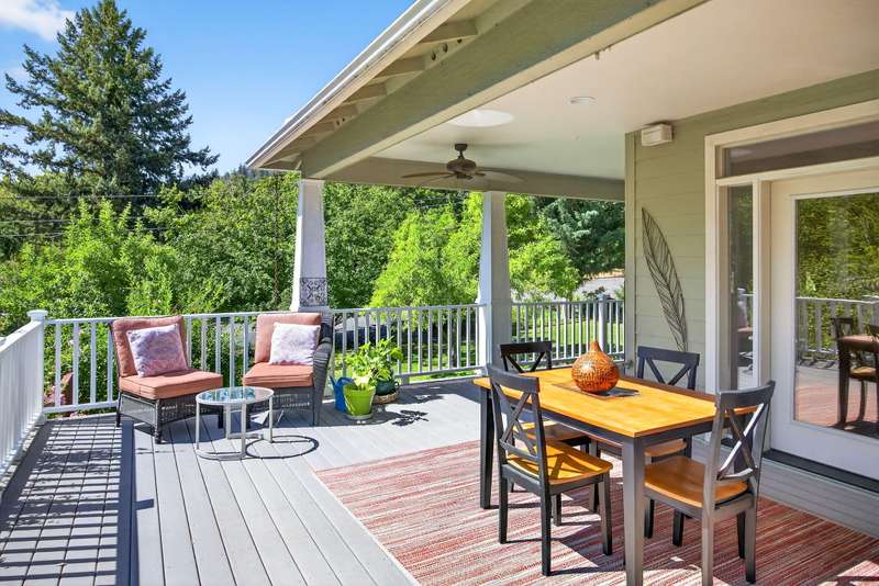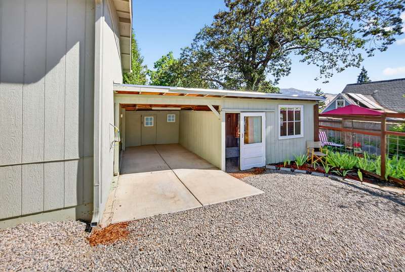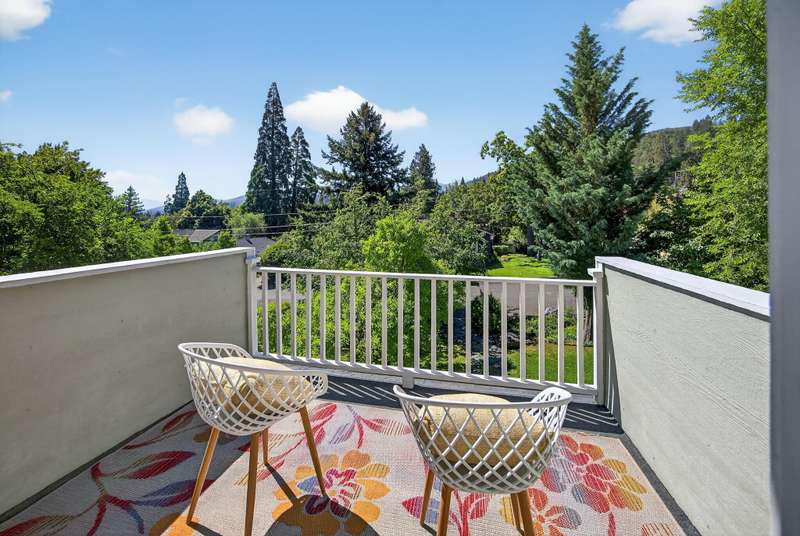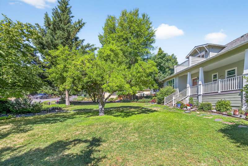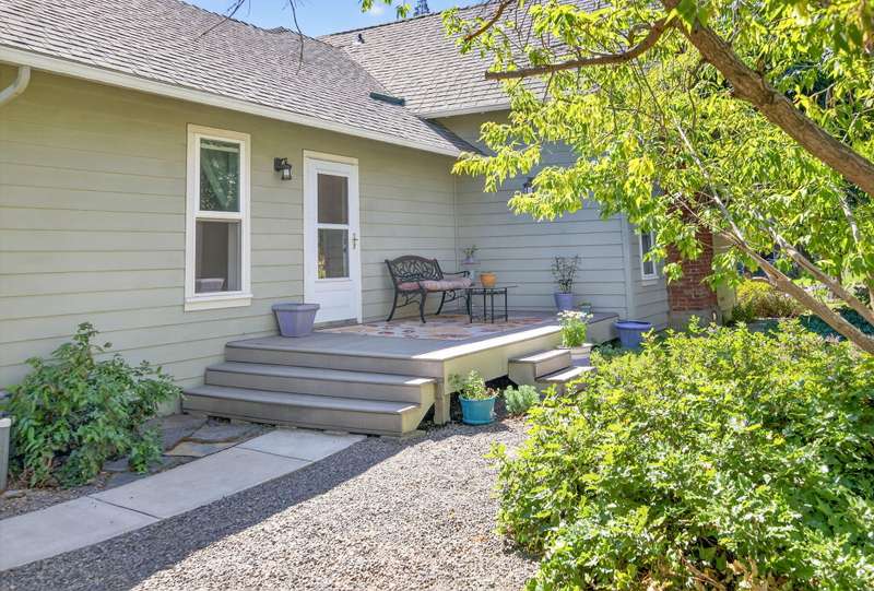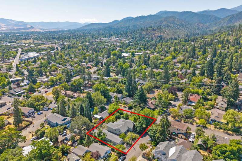 Winner of the 2012 Historic Preservation Award, this beautifully renovated 2,300 sq ft. home comes with a 720 sq ft guesthouse for a total square footage of 3,020. This home is situated in a well-established Ashland neighborhood, conveniently walkable to downtown. Modern open floor plan. Main-level living boasts a gourmet kitchen, primary suite with tiled bath, 2 additional bedrooms, second full bath, plus a half-bath for guests. Expansive decks offer mountain views. Beautifully landscaped grounds with perennial gardens, fruit trees & flowering shrubs are served by a zoned irrigation system. Hardwood floors, walnut cabinetry + built-ins add warmth throughout the well-appointed living space. Upstairs is perfect for office or 4th bedroom with half-bath and private balcony. New HVAC, electrical, and plumbing systems installed during 2011 renovation. Detached guesthouse, built in 2016, is currently a 5-star VRBO rental, or use for guests, Mother-In-Law or office/studio.