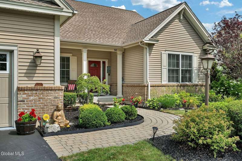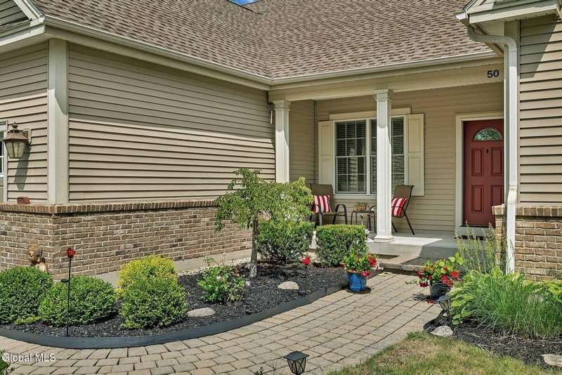 *** Offer Deadline Tuesday at 5pm. Welcome to 50 Sheldon Drive. Located in the highly desirable and maintenance-free community of Sheldon Hills, this beautiful ranch home offers comfort, style, and easy living. The exterior features a charming stone accent front, a covered porch, and a covered deck overlooking a picturesque backdrop. Inside, enjoy an open floor plan with hardwood flooring, arched entryways, a gas fireplace, and a gourmet kitchen complete with a hood, stainless steel appliances, and a tile backsplash.This home features two bedrooms, two full bathrooms, and a den, making it an ideal space for a home office or guest quarters. The primary suite includes cathedral ceilings, a walk-in closet, a soaking tub, and a tiled shower with bench seating. Additional highlights include eight-foot basement ceilings, Bilco door access for potential future finishing, an intercom system, and a whole-house generator.Experience maintenance-free living with HOA amenities including a clubhouse with an inground pool, fitness center, walking trails, putting green, and tennis and pickleball courts. Lawn care, fertilizer, spring and fall cleanup, and snow removal are all included. Please note, the showings are limited. Open House on Saturday. Visit YouTube to watch the full feature video and fall in love with 50 Sheldon Drive.