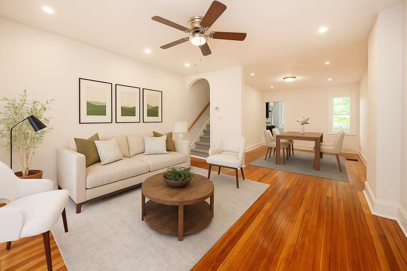 New Price! Welcome to this charming 3-bedroom, 1-bath townhome, ideally located within walking distance to the heart of the highly sought-after Narberth. This property is perfect for first-time buyers, downsizers, or anyone seeking comfortable living in a prime location. Freshly painted throughout, this inviting home is ready for your personal touch. Step inside to find a bright and spacious living room that flows seamlessly into the dining area—both featuring recessed lighting and gleaming hardwood floors. The updated kitchen at the rear of the home boasts granite countertops, gas cooking, a built-in microwave, and ample cabinetry—everything you need to prepare meals with ease. A rear door leads directly to the fully fenced backyard, perfect for outdoor summer barbecues, gardening, or simply relaxing in your own outdoor retreat. Upstairs, hardwood floors continue throughout the hallway and all three bedrooms. The primary bedroom offers a generous closet and ceiling fan, with convenient access to an additional hall closet. Two additional bedrooms provide flexible space for guests, a home office, or creative use. A beautifully renovated hall bathroom with new tile finishes off the second floor with style and functionality. The basement adds even more versatility, offering plenty of storage space along with a washer and dryer for your convenience. For added comfort and efficiency, this home includes a brand-new high-efficiency HVAC system. This home truly checks all the boxes: affordable, low taxes, private outdoor space, central air, excellent walkability, and a convenient location close to shops, restaurants, parks, public transportation & award-winning Lower Merion Schools. Don’t miss your opportunity—schedule a showing today before it’s gone!