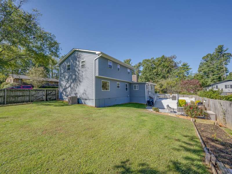This beautifully updated home blends modern comfort with functional design. The main level features a refreshed kitchen with modern appliances, new flooring, and an open dining/great room with an updated fireplace. Enjoy the upgraded sunroom and stylish barn doors in the office and laundry area. Upstairs, the former small bedroom is now a spacious primary suite with a large tiled shower, walk-in closet, and upgraded carpet. Outdoor living shines with upgraded landscaping, a French drain, expanded gravel area for extra parking or RV use, and a backyard courtyard with fire pit and built-in bench seating. Deck and exterior details have been refinished and painted. Just minutes from downtown Fletcher, Asheville Highway, and I-26, this move-in ready home offers comfort, style, and convenience.