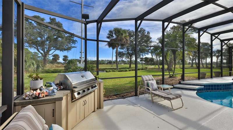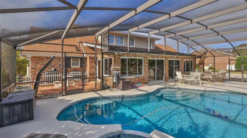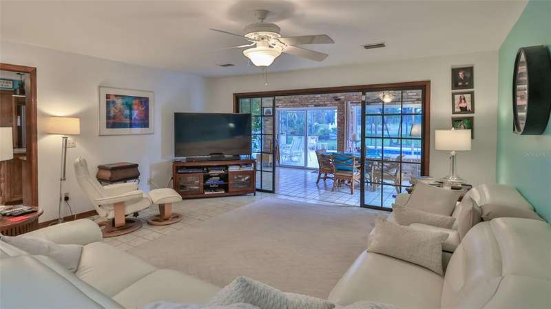 Under contract-accepting backup offers. Outstanding 4 Bedroom/3 Bath Golf-Front family home with heated salt-water Pool offers 3,526 sq. ft. of air-conditioned living space and could easily work as a 5-bedroom home by converting the spacious den that just needs a closet. Central location puts you within minutes from Historic Canal Street shopping district and all its boutiques, antique shops and restaurants, so close you may want to ride your bicycle down Riverside Drive and perhaps keep going to eclectic Flagler Avenue and the beach! Oversized, 26.10 ft. deep garage has rear-entry, and the circular driveway provides plenty of guest parking. Garage attic space is completely floored and offers plenty of head room, as well as electric winch to lift those heavy storage items. 2x6" construction, see photos attached for attic view. Gorgeous Chicago Brick sets the home apart from the rest of the neighborhood. Solar Heated Saltwater Pool is enclosed, and is the centerpiece of your outdoor space, with BBQ on spacious deck, overlooking the fairways. No HOA, so bring your boat! Gorgeous kitchen with wood cabinets and granite countertops, with large pass-thru to family room is the heart of the home. The generously sized living room flows into golf-front family room for panoramic views of the fairways. This golf-cart-friendly community allows you to ride to either of the 2 nearby golf courses. Laundry room is strategically situated near the guest bathroom and garage entry to the home. The primary suite is on the ground floor, and the 15 x 17 Den could easily be your 2nd ground-floor bedroom. Enjoy your family meals in formal dining room, breakfast area in kitchen, or while enjoying the golf course and pool views from the family room! Upstairs, 3 more bedrooms await you, one of them running front to rear, with 13 x 32 foot dimensions in this amazing private space. A cozy office provides a private area for your work-at-home space, your hobby or craft room. Generac Generator provides service to ground floor living space, should you lose power.
