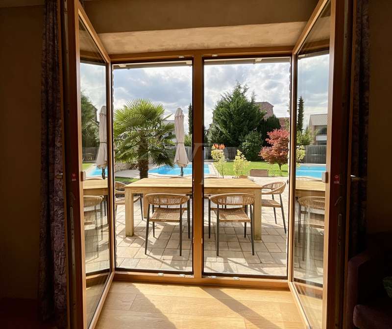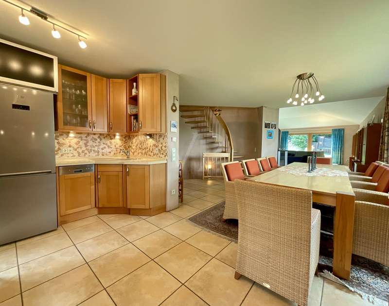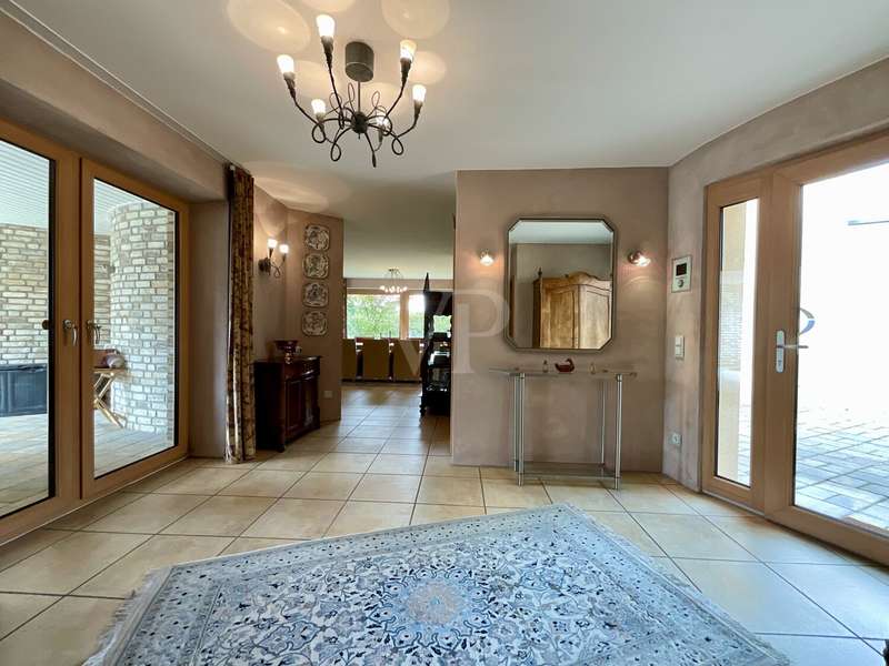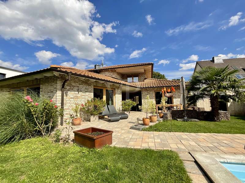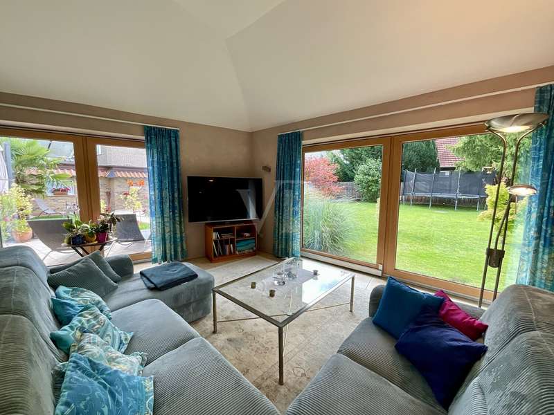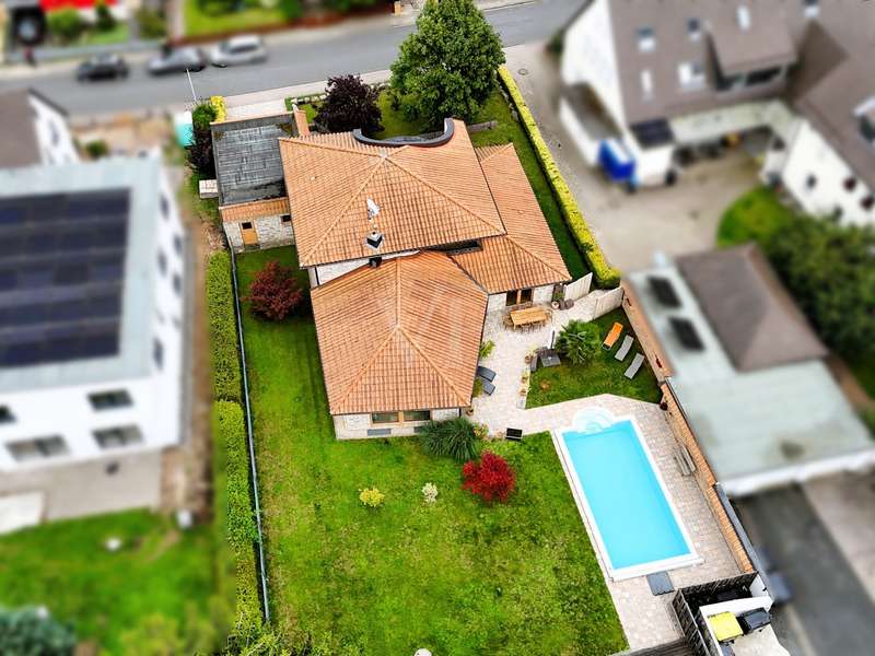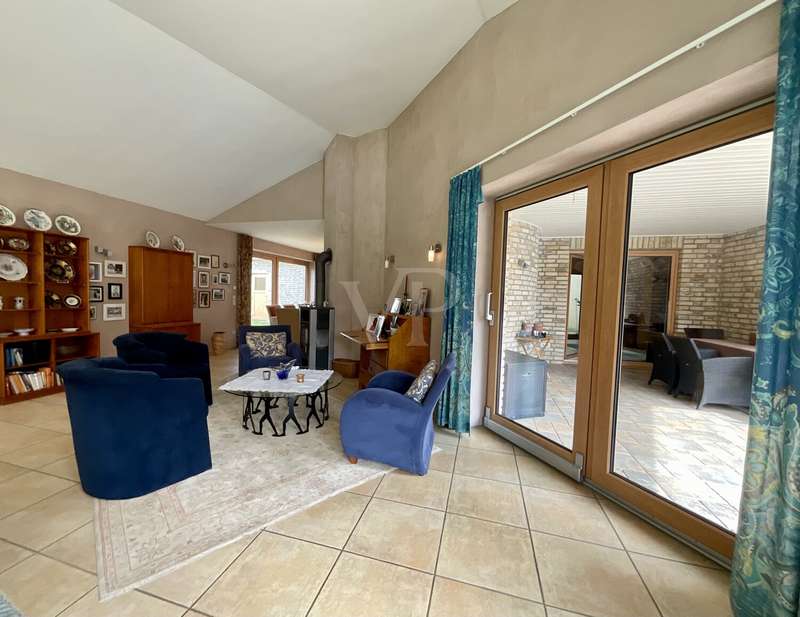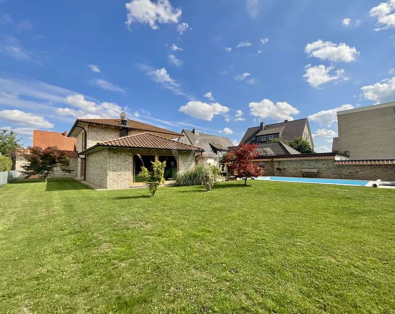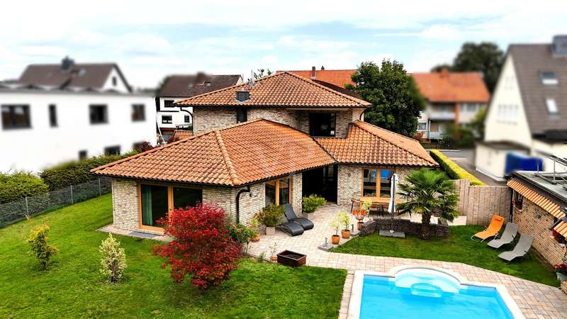 With this real estate offer, von Poll Immobilien Hannover Region Süd presents a representative detached house in Mediterranean style that will inspire you. Built in 2012, the house is situated on a plot of approx. 1,003 m² and impresses with its unique design and the recreational value of the garden. As soon as you enter the house, it's clear that it's all about spaciousness and brightness! The many window and patio door elements, which give you access to the outside from every room on the first floor and flood the rooms with plenty of light, contribute to a spacious and airy living ambience! The high-quality materials used to furnish the house, coupled with a uniform color scheme, meet the highest standards and leave nothing to be desired. The characterful house combines the charm of a Spanish finca with the amenities of modern living and offers its residents a high degree of sociability and privacy on 2 stylishly designed floors as well as in the partial basement. The heart of the house is the representative, open-plan living/dining/kitchen area. You can expect different living zones that flow seamlessly into one another. The fully equipped kitchen with its cosy dining area and access to the patio, the long table where the family comes together for extended meals, the living area, which becomes a place of cosiness in winter with its fireplace - no matter where you find your favorite spot, each area conveys the feeling that the inside of the house merges with the garden thanks to the many floor-to-ceiling window/door elements. The well-kept outdoor area will enchant you, as it blends in perfectly with the Mediterranean style of the house. The spacious, partly covered terrace invites you to spend relaxing hours or happy evenings outdoors. The pool, as a highlight, provides cooling on warm days and lends a certain vacation flair to your own home. This combination of pool, terrace and garden creates space for relaxation, leisure and shared moments with family and friends. You will find the privacy you need in the 3-4 bedrooms. Two rooms on the first floor can be easily converted into children's or guest rooms and, with the bathroom located there, which is equipped with a walk-in shower, offer the best prospects of being able to live in the house in old age. With this in mind, the entrance doors and all doors on the ground floor are barrier-free and the interior doors are extra-wide and therefore wheelchair-accessible. From one of the two rooms, you can not only enjoy the view of the beautiful garden, but also step out directly onto the terrace through double doors - wake up with a vacation feeling! The third room, located on the upper floor, offers the same view, but from the sheltered balcony, which you can access from this room. The other room, which can be accessed from the bedroom, is perfect as a dressing room or office. Together with the very attractive bathroom, which is located on this living level and is equipped with a corner bathtub, a floor-level shower and two washbasins, this living level guarantees a refuge of relaxation. If you need more space, head to the basement. Here you will find a room that can easily be set up as an office and a Tyrolean-style party room. The heating system is housed in a third room in the basement. The spacious double garage offers a dry place for your fleet of vehicles and garden tools. A great advantage is the direct access to the garden and the house, so that purchases can be stored in the adjoining storage room without getting wet. Overall, this property impresses with its spacious, light-filled rooms. The combination of Mediterranean living culture, natural and high-quality materials and the leisure-oriented outdoor area makes the house a special meeting place for family and friends, but also a retreat with character - for people who appreciate something special and are looking for quality of life and comfort.