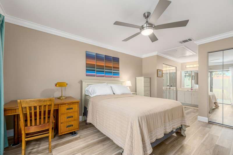 DIRECT WATERFRONT Villa with spectacular river views (Per FEMA flood map, flood insurance is not required!!). 3 Bedrooms with 3 full baths and two master suits! New roof in 2018. Impact glass windows and doors in 2016 (except front door and sidelight). Renovated with newer flooring, newer kitchen, newer water heater and brand ew electrical panel and A/C. Community offers pool/spa, community dock & gazebo. When you walk in the door you will be impressed with the cathedral ceilings and then there is that view!