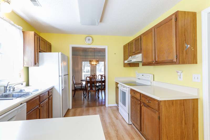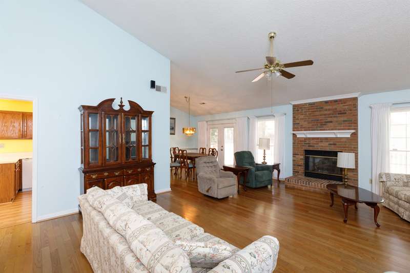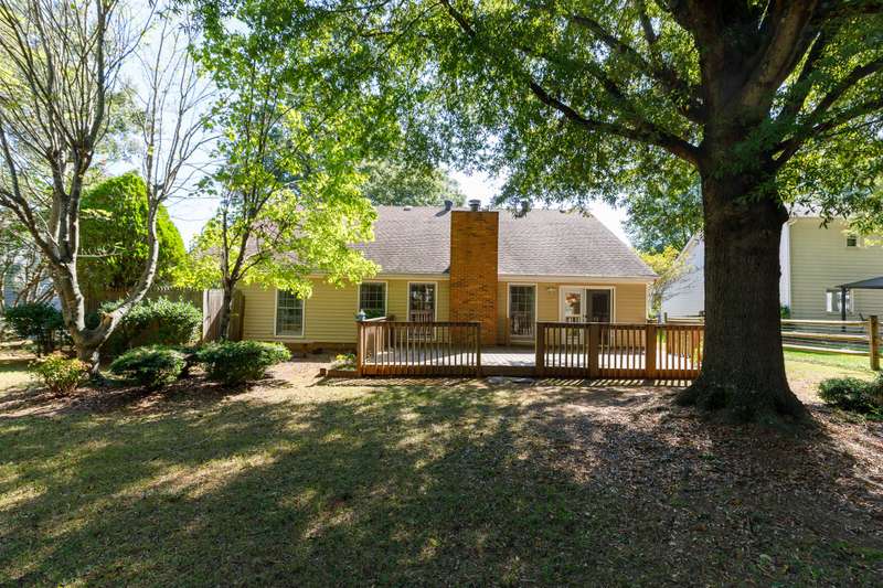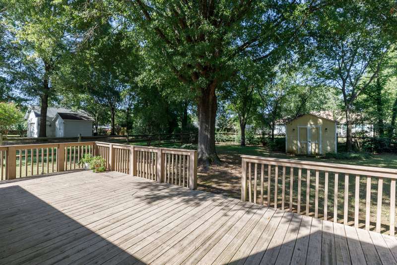 Nestled in a sought-after established neighborhood, this spacious home sits on a large lot with an oversized garage and easy access to I-77, shopping, and restaurants. A charming front porch welcomes you inside, where the living room impresses with its vaulted ceiling, classic brick fireplace, and convenient wet bar ? perfect for entertaining or relaxing evenings. The floor plan also features a formal dining room and a generously sized kitchen with a large eating area, offering plenty of space for gatherings. The primary suite serves as a private retreat with a tray ceiling, dual sinks, a garden tub, and a walk-in closet. Outdoor living is equally appealing with a huge deck ideal for cookouts or simply enjoying the view of the spacious yard. A storage building provides additional functionality for hobbies or extra belongings. With its inviting spaces and prime location, this home is ready to suit your lifestyle.