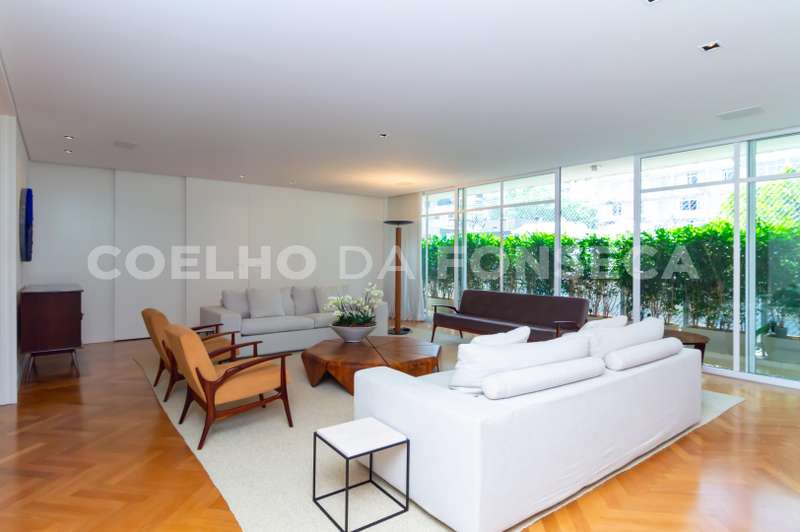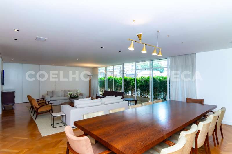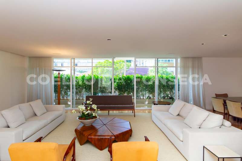 Apartamento com 340m² de área útil, 4 dormitórios (2 suítes), amplo living (90 m²) com terraço em toda extensão, lavabo, 2 vagas, cozinha, área de serviço, 2 dependencia de empregada. Pronto para morar, em local nobre.