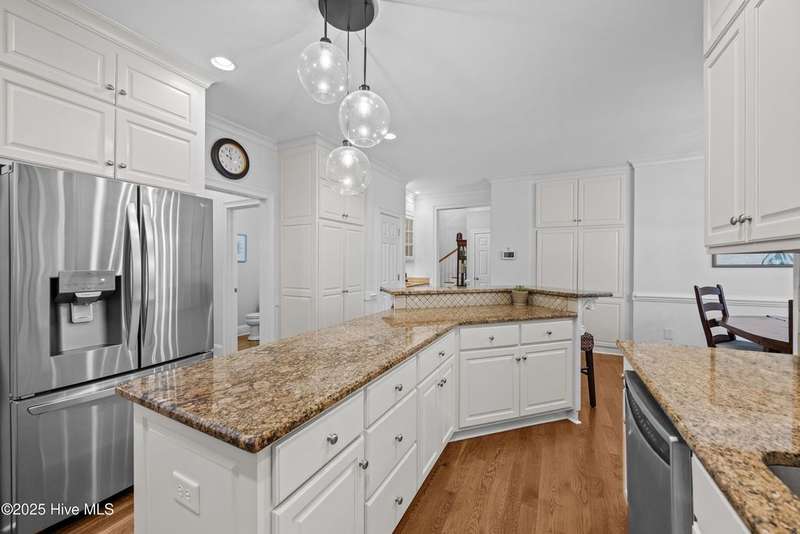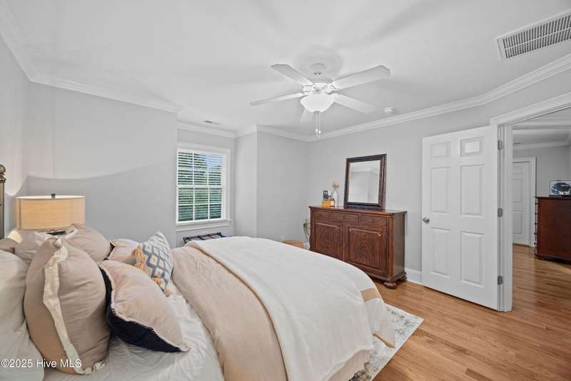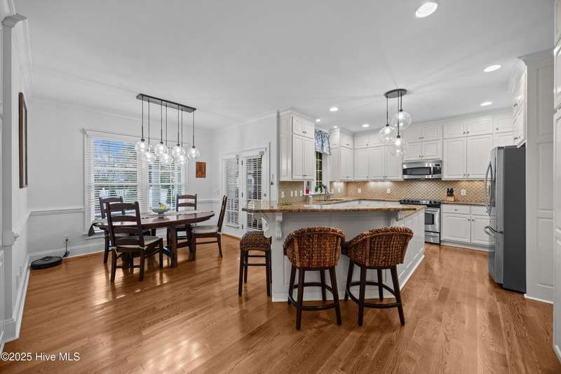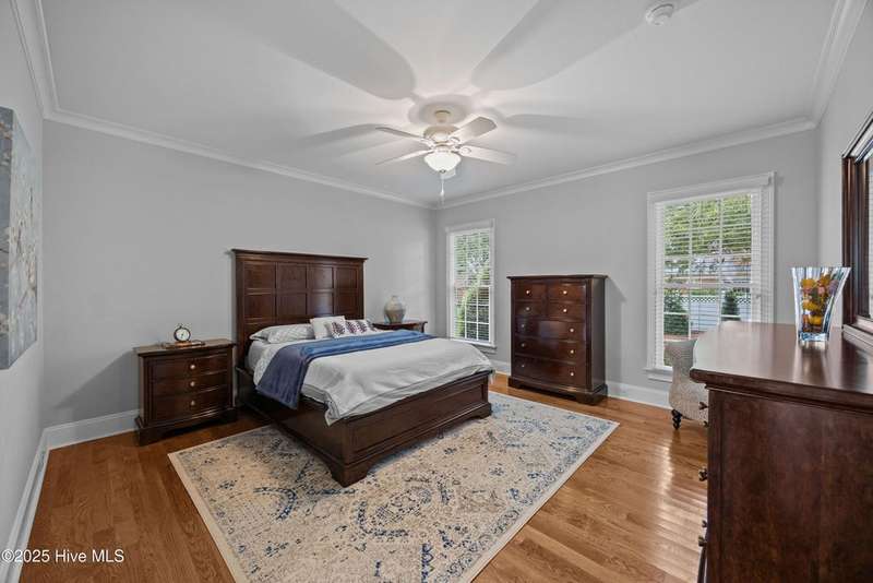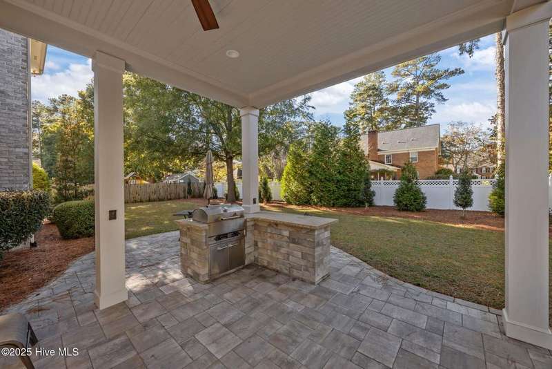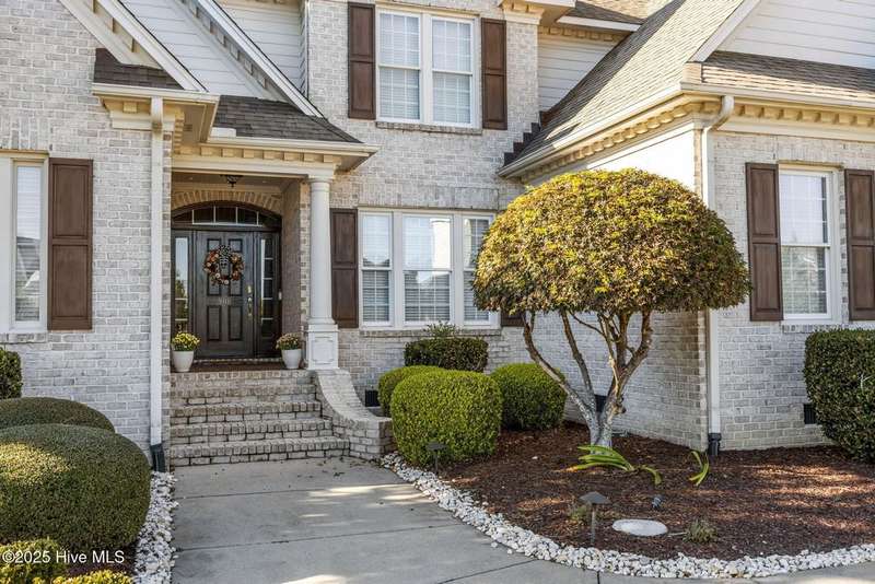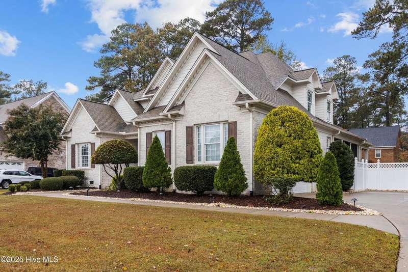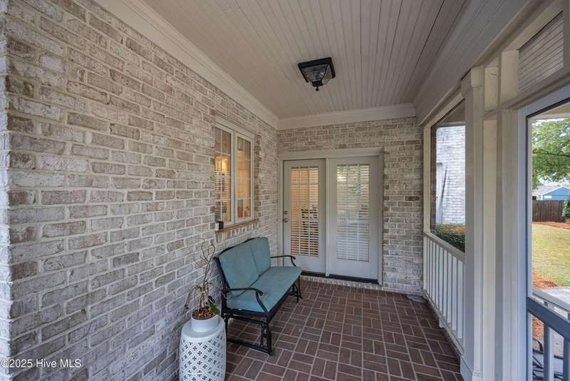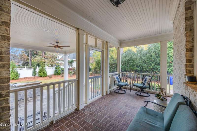 Custom brick home by Mont Gaylord in Bedford. The all-brick exterior?complete with faux-stain shutters and entry door?sets a classic tone. Inside, the main level opens with a foyer and grand staircase leading to a living room with fireplace and a formal dining room. The kitchen features a large island, granite counters, a wet bar, under-cabinet lighting, abundant built-in storage, and a breakfast area. Also on the main level are a laundry room with utility sink, counter space, and cabinet storage, plus a half bath/powder room.The main-floor primary suite is generously sized with space for a sitting area and a large walk-in closet. The ensuite includes double vanities, a jetted tub, a tile walk-in shower, and a private water closet. A main-level office/den is nearby.Upstairs offers three additional bedrooms, two full bathrooms, and a large bonus room with a walk-in closet, suitable as a fifth bedroom. Storage is excellent with two walk-in attics and multiple closets. Outdoors, established landscaping frames a screened wrap-around porch just off the kitchen, a custom built-in grill station on the patio, and a fenced rear yard. Hardwood flooring is installed throughout. Oversized garage.