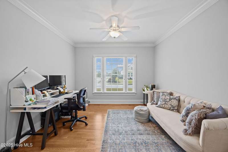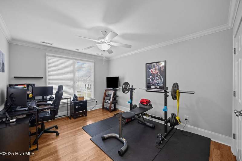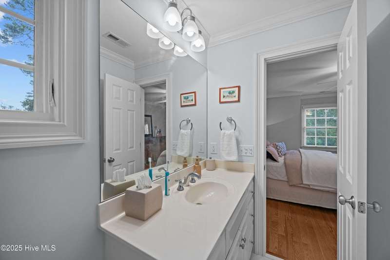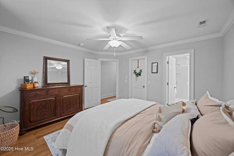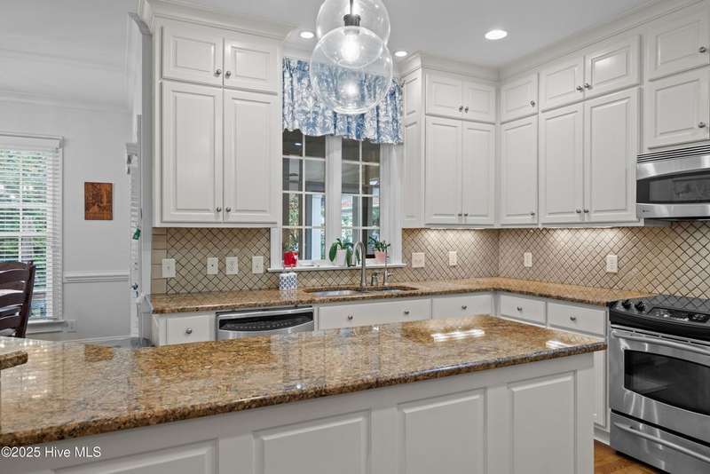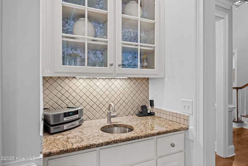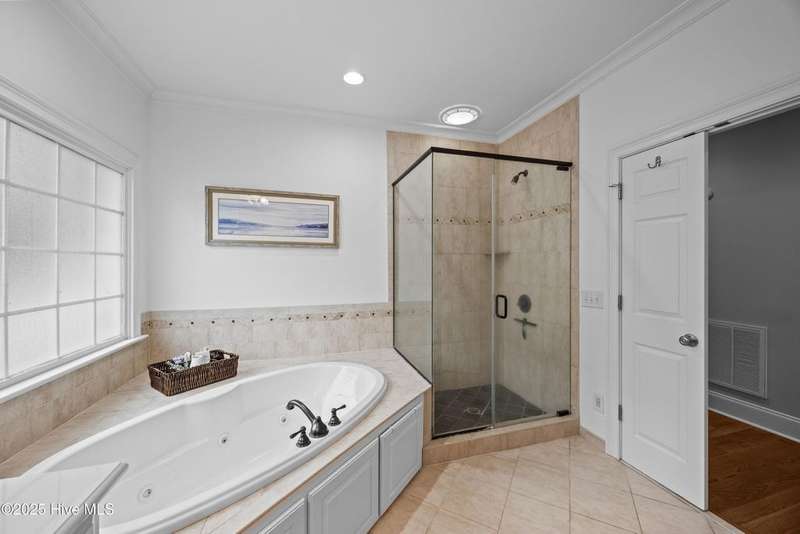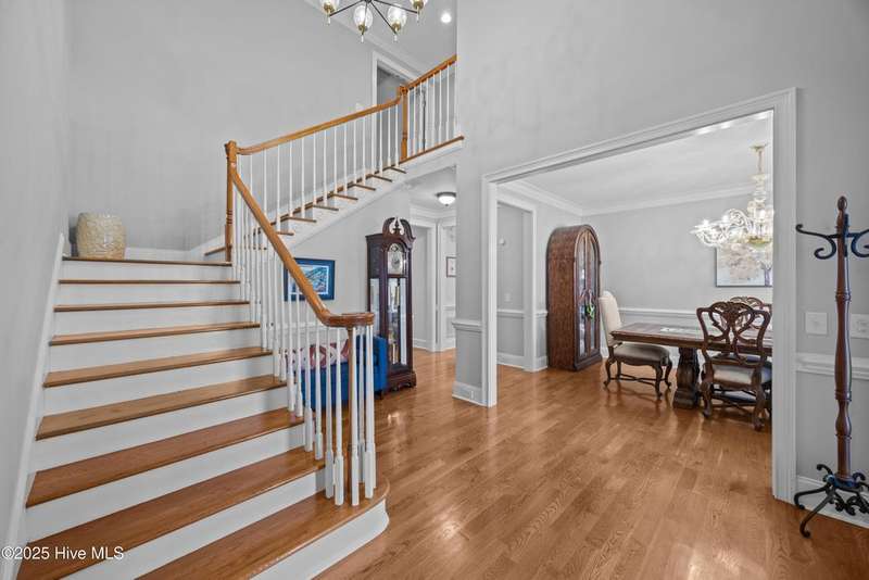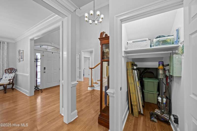Custom brick home by Mont Gaylord in Bedford. The all-brick exterior?complete with faux-stain shutters and entry door?sets a classic tone. Inside, the main level opens with a foyer and grand staircase leading to a living room with fireplace and a formal dining room. The kitchen features a large island, granite counters, a wet bar, under-cabinet lighting, abundant built-in storage, and a breakfast area. Also on the main level are a laundry room with utility sink, counter space, and cabinet storage, plus a half bath/powder room.The main-floor primary suite is generously sized with space for a sitting area and a large walk-in closet. The ensuite includes double vanities, a jetted tub, a tile walk-in shower, and a private water closet. A main-level office/den is nearby.Upstairs offers three additional bedrooms, two full bathrooms, and a large bonus room with a walk-in closet, suitable as a fifth bedroom. Storage is excellent with two walk-in attics and multiple closets. Outdoors, established landscaping frames a screened wrap-around porch just off the kitchen, a custom built-in grill station on the patio, and a fenced rear yard. Hardwood flooring is installed throughout. Oversized garage.