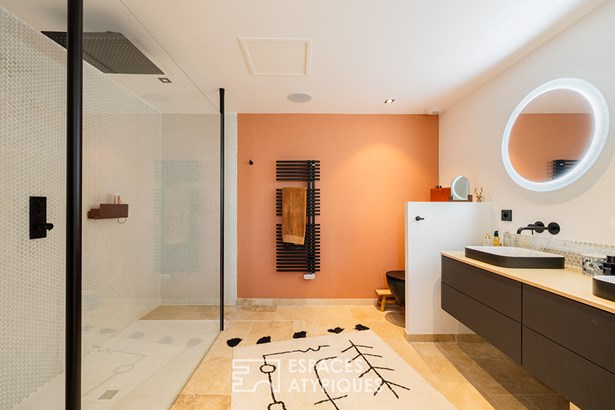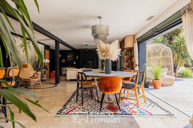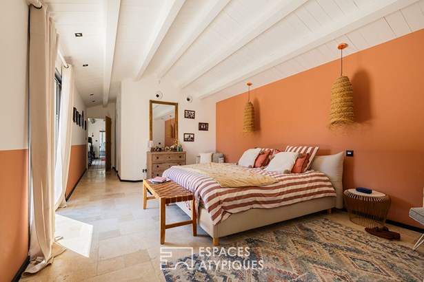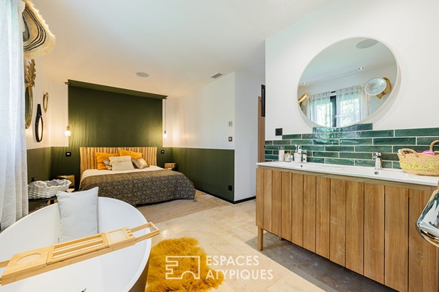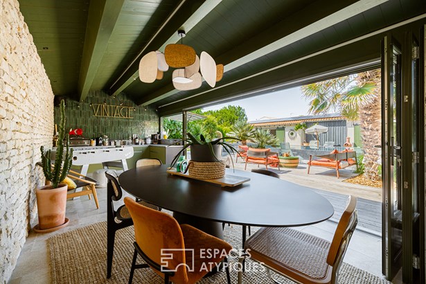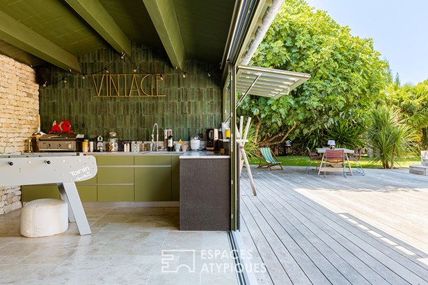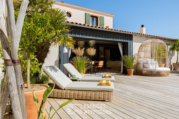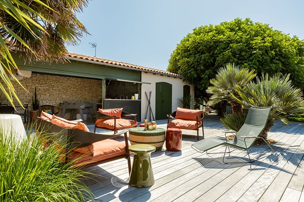 Located in a sought-after neighborhood in the commune of Chatelaillon-Plage, this exceptional villa offers a unique living environment, blending elegance and functionality. The entrance leads to a light-filled living room, where a welcoming lounge and dining room harmoniously blend together. A large bay window generously opens the space onto the terrace, creating a natural continuity with the outdoors. In its extension, an office area benefits from a soothing view of the garden. The modern and welcoming kitchen features a comfortable central island, optimizing circulation. The meticulous appointments and noble materials, such as the travertine flooring, give an undeniable cachet to the whole. In one wing, the intimate layout of a master suite with its private bathroom and dressing room reveals a breathtaking view of the pool and garden. In its continuation, a space benefiting from a swim spa allows you to enjoy a water feature year-round. On the same level, a second suite benefits from its own private bathroom. Upstairs, two bedrooms share a bathroom. The design of the house also allows for additional sleeping accommodations as needed. Outside, the landscaped and wooded grounds house various living spaces: a summer lounge, a fully equipped summer kitchen, and a heated swimming pool. The lush vegetation and the furnished pool house create a holiday atmosphere, ideal for entertaining. This villa is a rare find on the real estate market, distinguished by its interior and exterior layout, its careful decoration, and its privileged location. A true haven of peace combining comfort and style. ENERGY CLASS: 'B' / CLIMATE CLASS: 'A'. Estimated average annual energy expenditure for standard use, based on energy prices for the years 2021, 2022, and 2023: between EUR2,020 and EUR2,800.