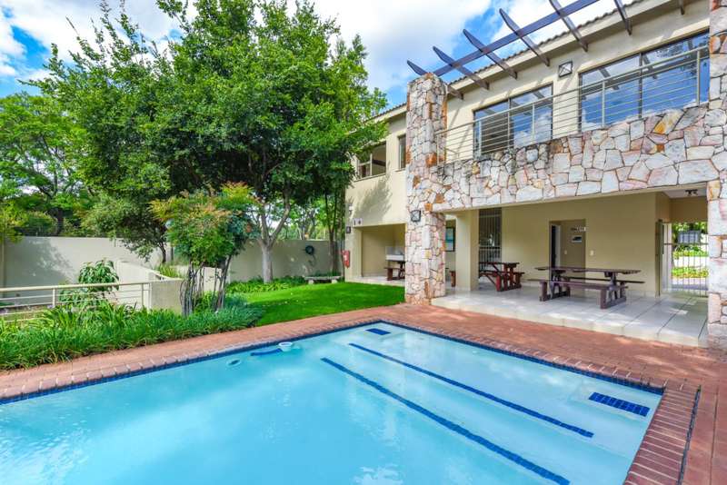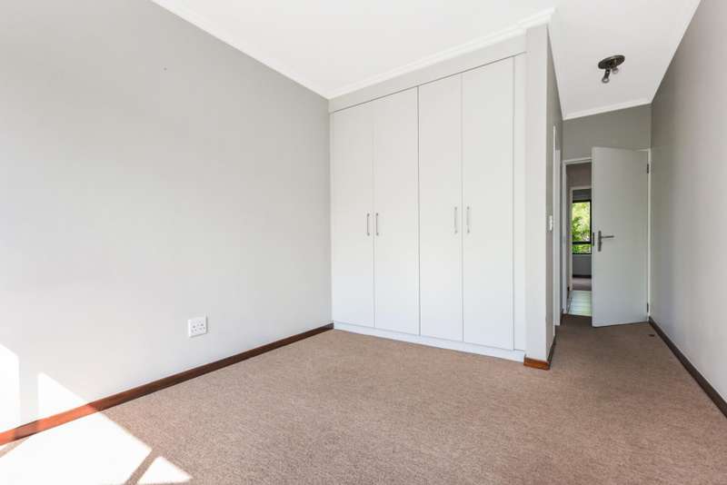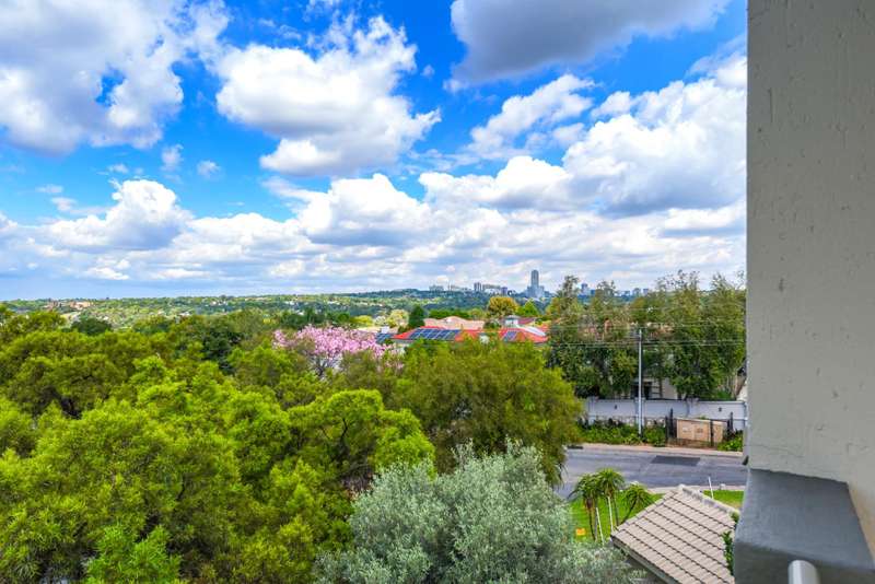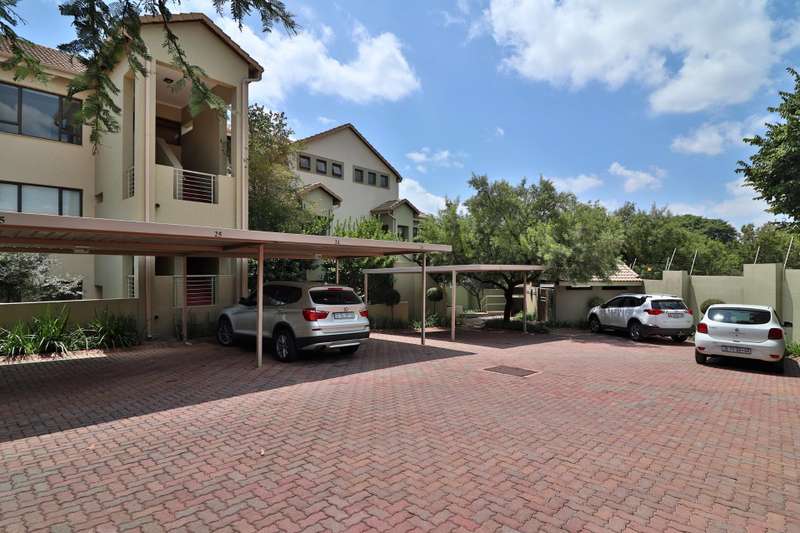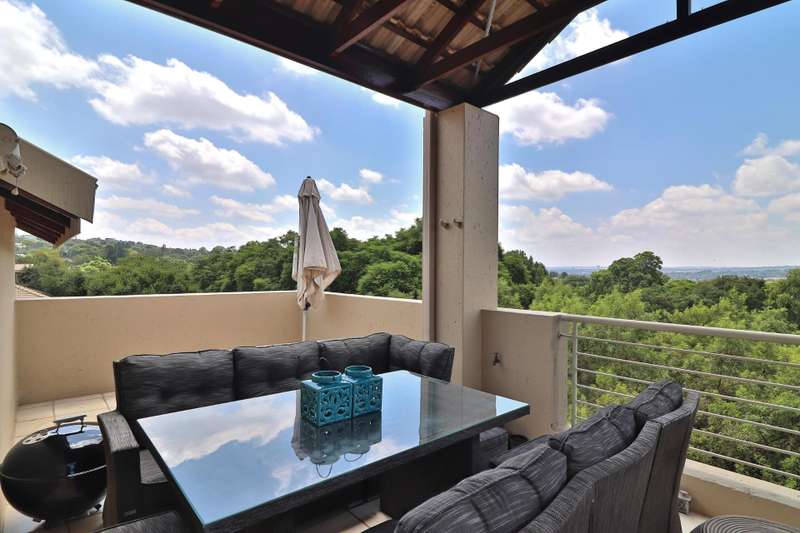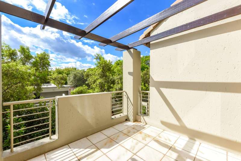 This flawless two-bedroom duplex apartment is situated on the 1st floor of an upmarket complex in Bryanston. It boasts breathtaking views of the surrounding well-established trees and manicured lawns, offering a serene outlook of the Sandton skyline from a well sized patio/deck. Perfect for sundowners, parties and summer BBQ's.