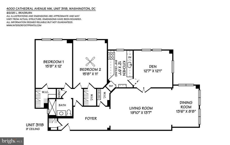 *** Welcome to Apartment #311B. Don't miss this beautifully renovated, turnkey residence. *** A bright and spacious corner apartment with 2 bedrooms & 1 bathroom - completely move-in ready with premium finishes, fixtures, and designer lighting (a full list of lighting fixtures is included in the listing documents). *** 2 exposures - north and west - provide lovely natural light and views of Glover Archbold Park. *** The high-end, gourmet kitchen features top-of-the-line appliances - Viking, Liebherr, and Bosch - along with sleek countertops and a window. *** The full bathroom is luxuriously appointed with a walk-in glass shower - elegant and spa-like. *** Highlights of the flexible floor plan include a large entry foyer with marble flooring, a generous living room with paneled bifold double doors with elegant hardware, and low-profile ceiling picture lighting, plus a den and dining room (with 6 windows!) - which could be interchanged depending on owner preference. *** Both well-proportioned bedrooms have walk-in closets and enjoy abundant natural light. *** Additional features include plantation shutters, crown moldings, picture moldings, a large linen closet, coat closet, additional storage closet, original parquet wood floors, and approximately 9' ceilings. *** Approximately 1,350 square feet - size estimated. *** Fee includes utilities (except internet/cable) & property taxes. *** The Westchester is a true urban oasis, located on approximately 10 acres of beautiful, well-kept grounds that includes a beloved, tiered sunken garden. *** The building offers many amenities - convenience market, guest rooms, library, hair salon, barber shop, dry cleaners & gym/fitness room. MetroBus stop directly in front of the property - D90 route (formerly the N2) with the D96 (formerly the N4) route no more than a block away. *** Restaurants, retail shopping & neighborhood points of interests are nearby - Foxhall Square, Cathedral Commons, City Ridge, neighboring Glover Park - there is a Giant, Trader Joe's, Wegmans, Wagshal's, a community victory garden & Washington National Cathedral and grounds.