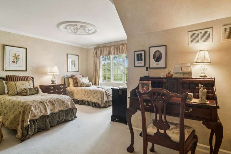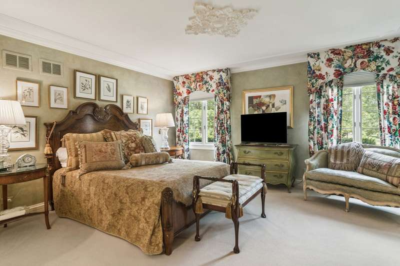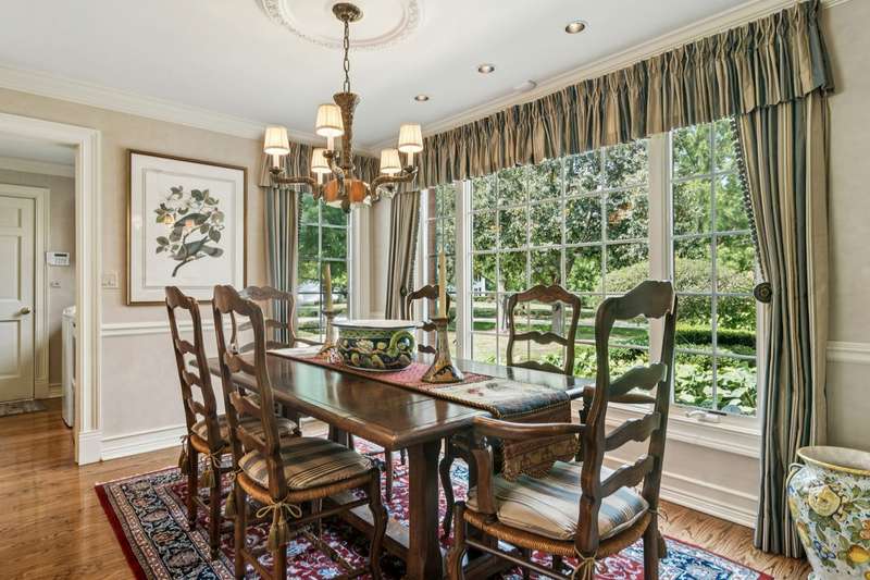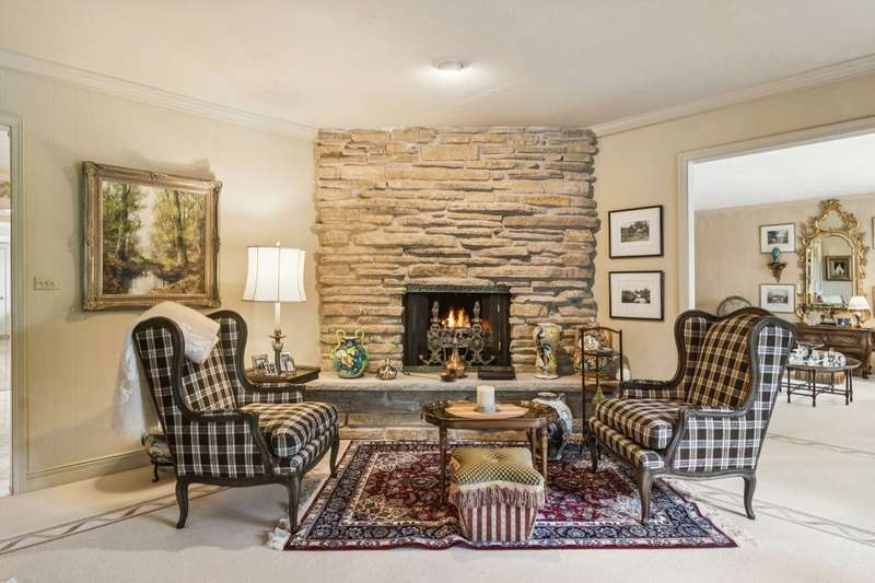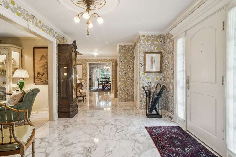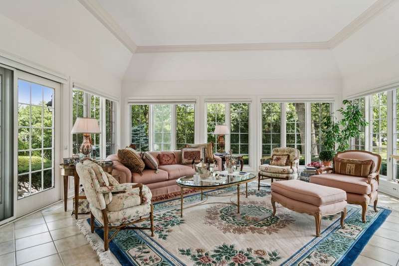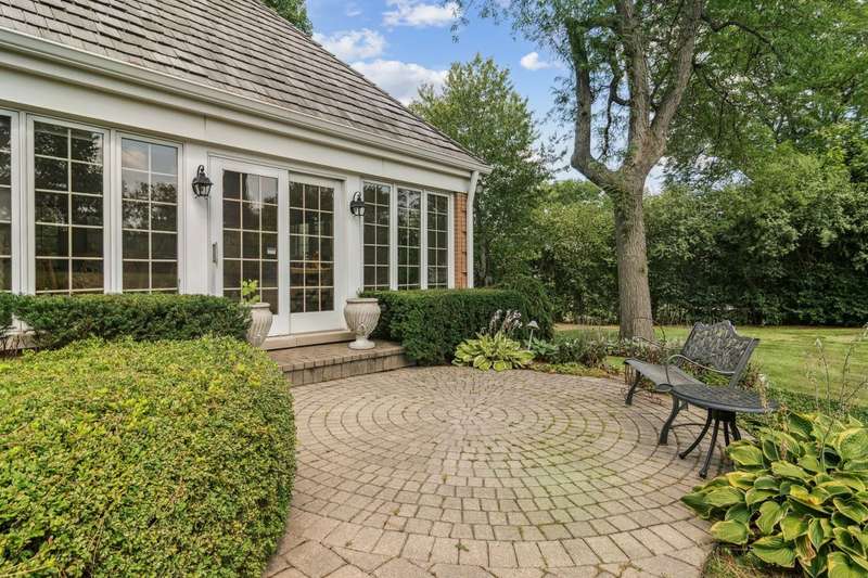 LOCATION and QUALITY are the theme of this stunning French country style home! It was built in 1973 by Richard Kessler with a four season room addition by Robert Parker Coffin in 1983. The all brick home sits on a cul-de-sac in McIntosh of Inverness, on a most desirable lot of over 1 acre. The owners took pride in constructing and designing the home of their dreams and made sure that all of the crown moldings and baseboards had substantial size equal to the magnanimous style and size of the home. Enter into the marbled foyer and take in the beautiful views of the back yard through the formal living room. The first floor primary suite and study are to the left of the entry. The primary bathroom was recently remodeled by the acclaimed Abruzzo Kitchen and Bath company. A large walk in closet features built-in storage. The formal dining space is to the right of the entry. It has beautiful parquet floors, floor to ceiling windows and can seat 10 to 12 guests easily. The large kitchen has polished wood floors, updated stainless steel appliances, and a large eat in area with a beautiful window allowing natural light to flow through all day long. Adjacent to the kitchen is the laundry/mud room. The washer/dryer were purchased in 2024, and there are cabinets and two large closets for tons of storage. The cozy family room is perfect for entertaining with it's charming stone fireplace. A built-in wet bar with beverage refrigerator provides for a lively evening with friends and family. The shelves around the wet bar add character and a wonderful place to display your barware or books. As you walk up the beautiful, custom stairway you will find three large bedrooms with ample closets and extra large windows. There is one large bathroom and a walk-in attic. The four season room adds another WOW factor to this gorgeous home. Windows on all three sides bring the greenery of the outdoors inside. Both paver patios are accessed by sliding doors and each patio is professionally landscaped with mature trees providing privacy. The basement was recently upgraded and has a terrific recreation room with luxury vinyl flooring that can withstand any kind of play! There are cedar closets and plenty of storage in the back area of the basement. Amenities are as follows: 3 furnaces, 3 AC's and reverse osmosis water system. Hot water heater replaced in 2020 and the cedar shake roof was replaced in 2019. If LOCATION AND QUALITY are on your list, this home is for you!
