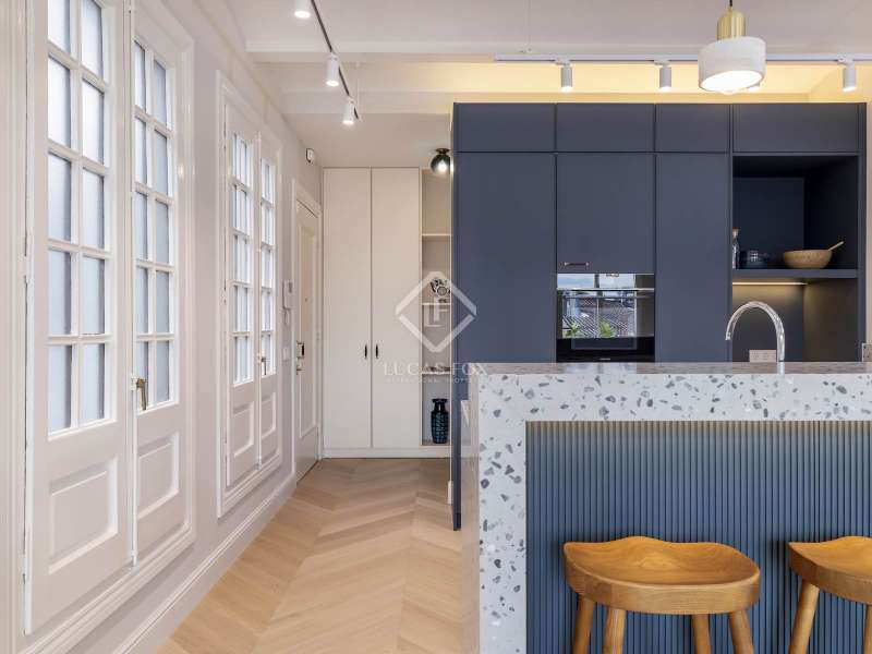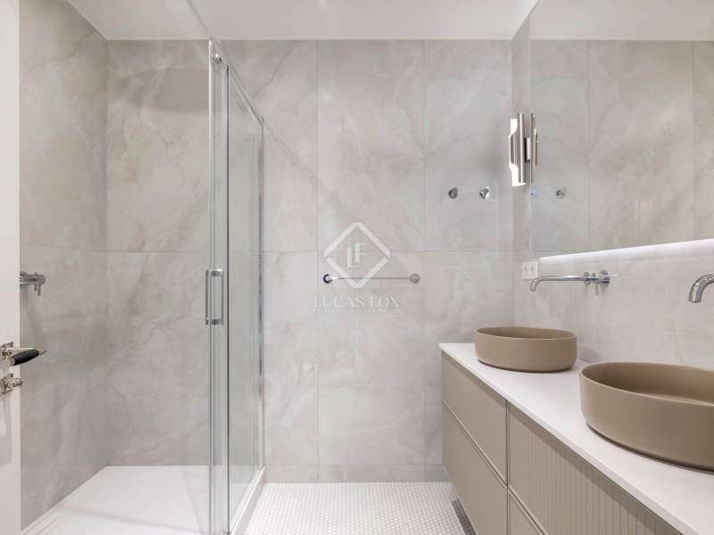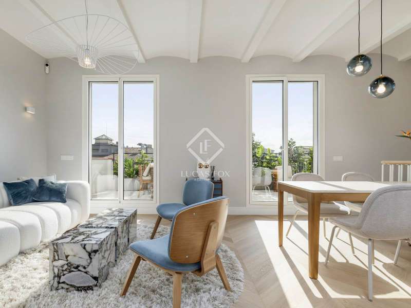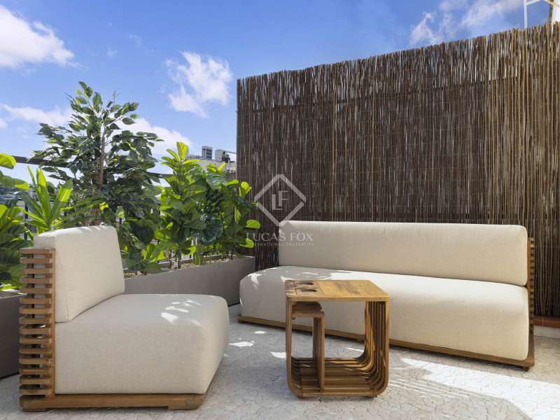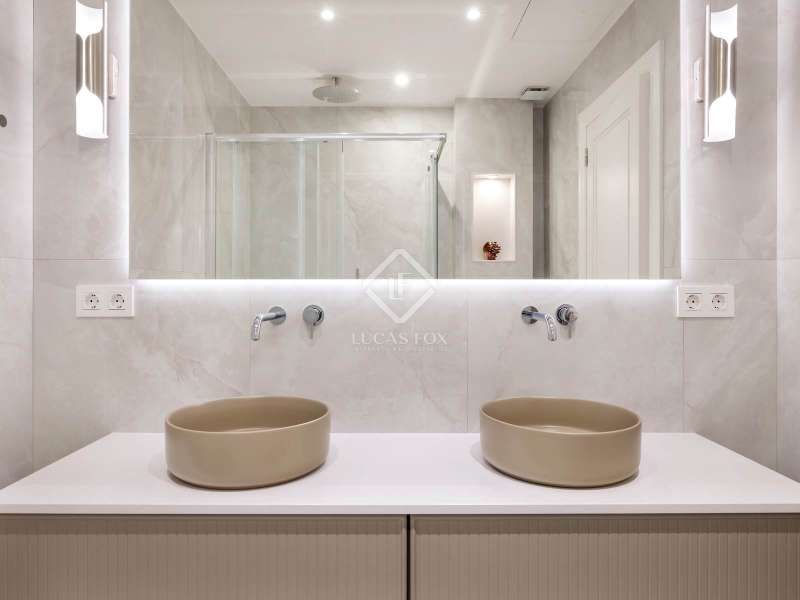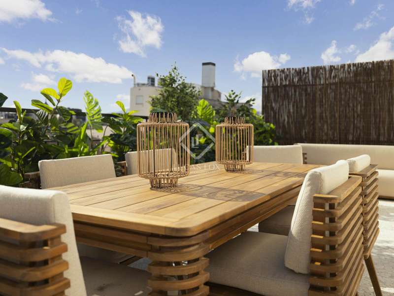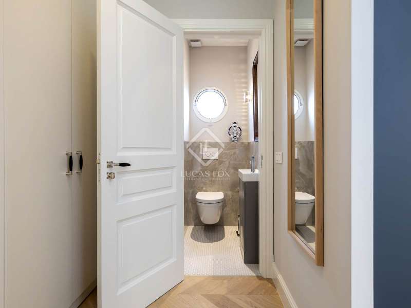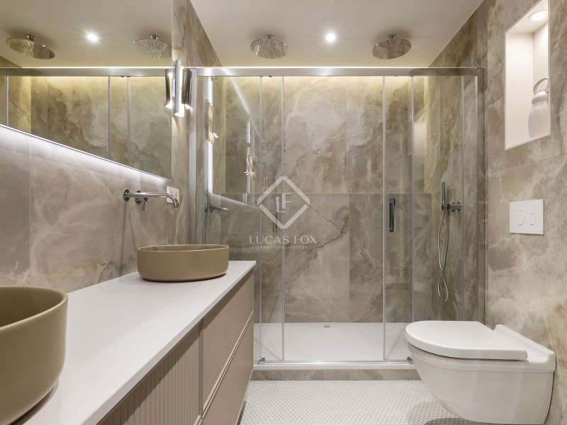 Located next to the former Ritz Hotel, this exquisite 133 m² apartment sits within a beautiful modernist building featuring a grand entrance hall and two original lifts. Nobohome has designed the 6th and top floor as the day zone, where a bright and spacious living room seamlessly integrates with a fully equipped open kitchen. This space extends onto a south-facing 22 m² terrace, perfect for enjoying the sun and city views. An elegant internal staircase leads to the 5th floor, the night zone. Here, two bedrooms share a stylish bathroom, while the main suite boasts a walk-in wardrobe and a private ensuite bathroom. Each of the three bedrooms enjoys direct access to a 18 m² balcony, enhancing the sense of space and light. In the hallway, discreet built-in wardrobes house the washer, dryer, and heat pump. Additionally, both floors have separate entrance doors, providing flexibility and convenience. This stunning penthouse blends modern comfort with timeless elegance in one of Barcelona’s most sought-after locations. Please contact us for further information.