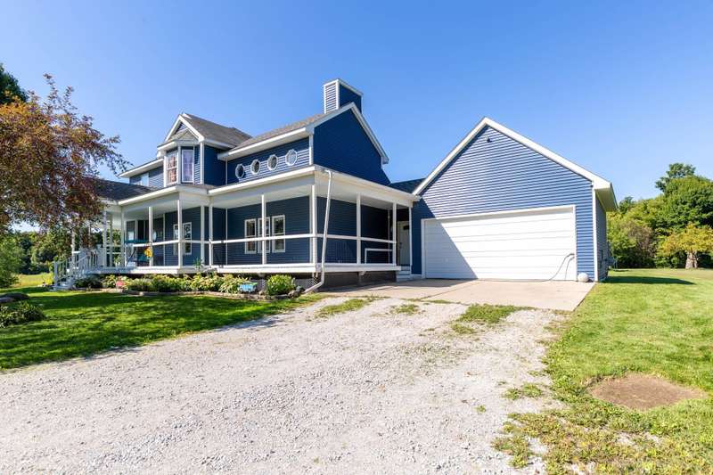 Experience the charm of country living! Situated just north of Lapeer in the beautiful rolling hills of Mayfield Township, this home offers the freedom of no association fees or rules. This stunning Modern Farmhouse features a welcoming wrap-around porch and ample sleeping space, with 4 to 5 bedrooms, including up to two on the main level. Enjoy the expansive 4-acre property with a wooded area, perfect for pets, kids, and adults alike. If you have dreamed of raising chickens, this is the place for you! There is also plenty of sunlight available for gardens or additional structures. Recent improvements include brand new siding, elegant porcelain flooring on the first level, and durable laminate on the second. The home has converted to natural gas, adding a high-efficiency furnace, air conditioning, and water heater. Other upgrades encompass a new well pump and a 220 outlet in the garage for electric vehicle charging. The back porch has been enclosed for comfort. Come see this incredible property today!