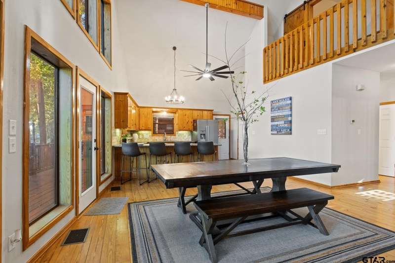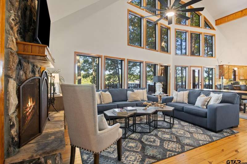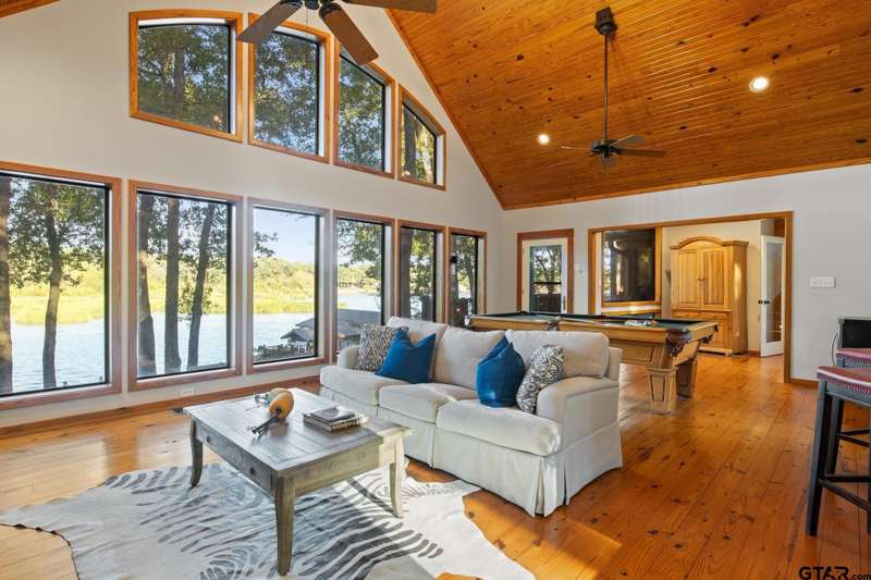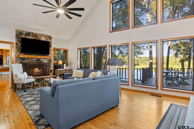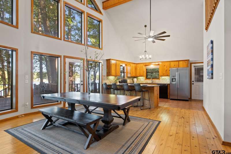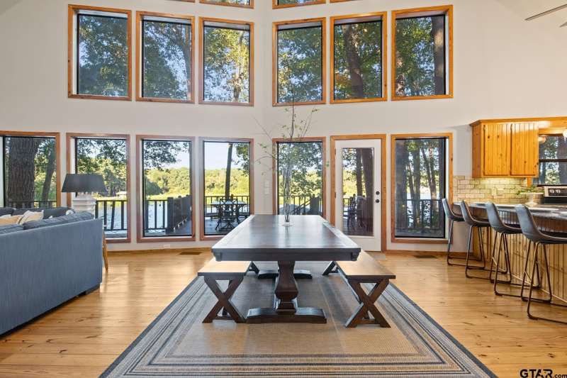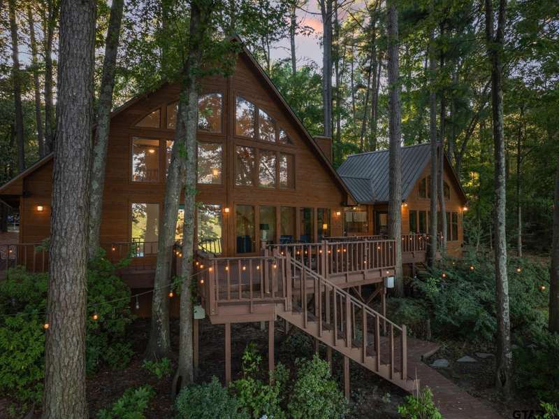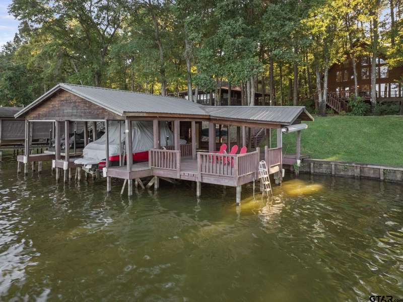 Escape to your very own Lake Cypress Springs paradise with this luxury lakefront property situated on TWO spacious lots, totaling over 1 acre of prime real estate and offering potential for adding a garage or guest home. Located in the coveted Eagle Point subdivision and with many updates, this cozy home offers a blend of modern elegance and rustic serene lakefront living. Step inside to discover a sunlit open living and dining area that effortlessly flows into a chef's dream kitchen featuring an oversized breakfast bar and granite countertops. The primary suite is a true sanctuary with a private ensuite bath and stunning natural light. With an additional guest room downstairs, large loft with beds and full bath, and a game room for entertainment, there's a place for everyone to enjoy. Outside, the expansive porch among towering trees, offers ample space for gatherings while overlooking the water. The boathouse is equipped with a personal watercraft lift, boat lift, and extra slip, providing the ultimate convenience for all your water adventures. Embrace lake life at its finest in this remarkable property.
