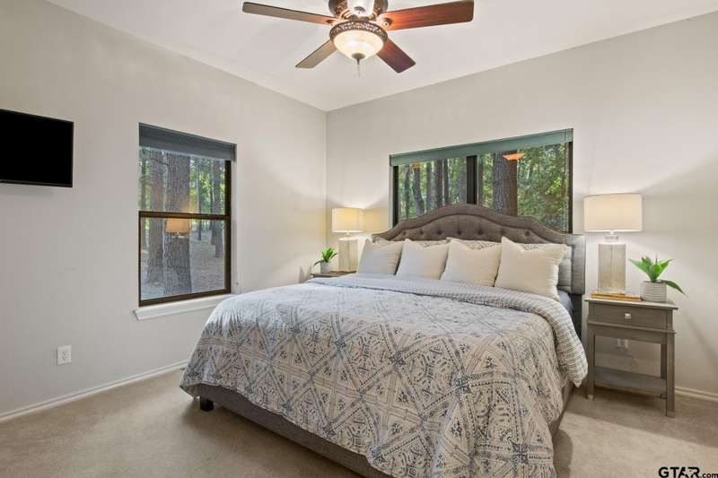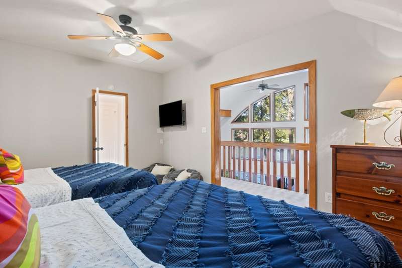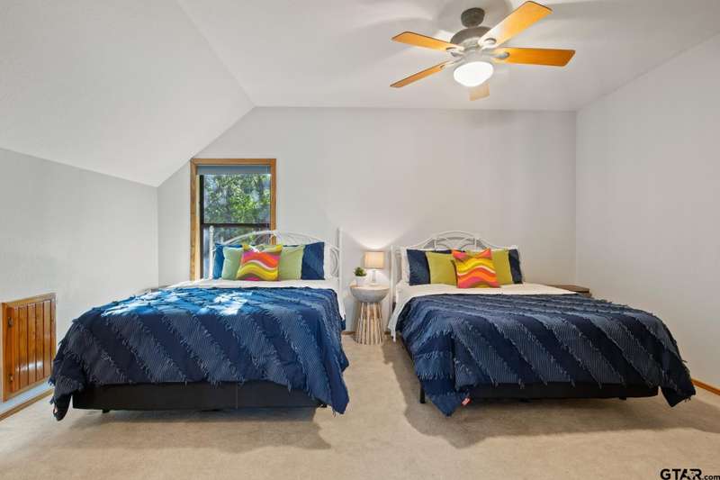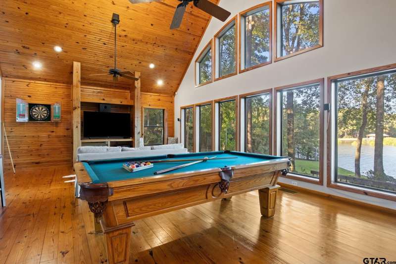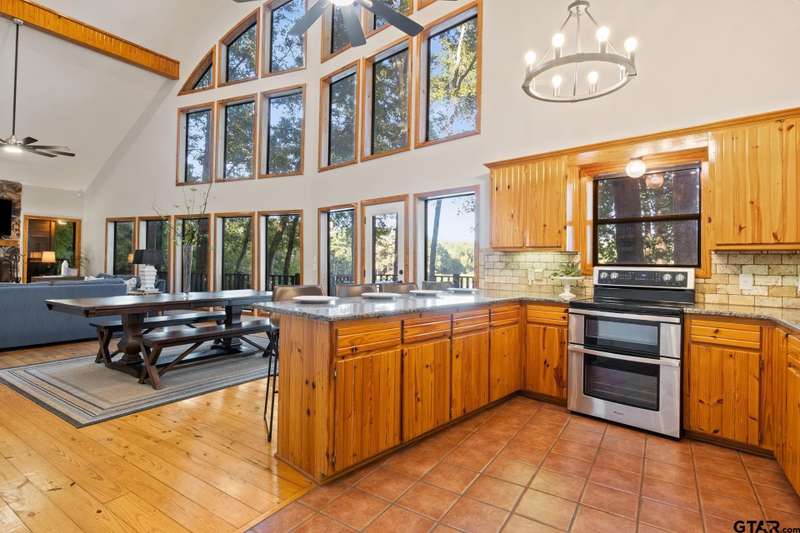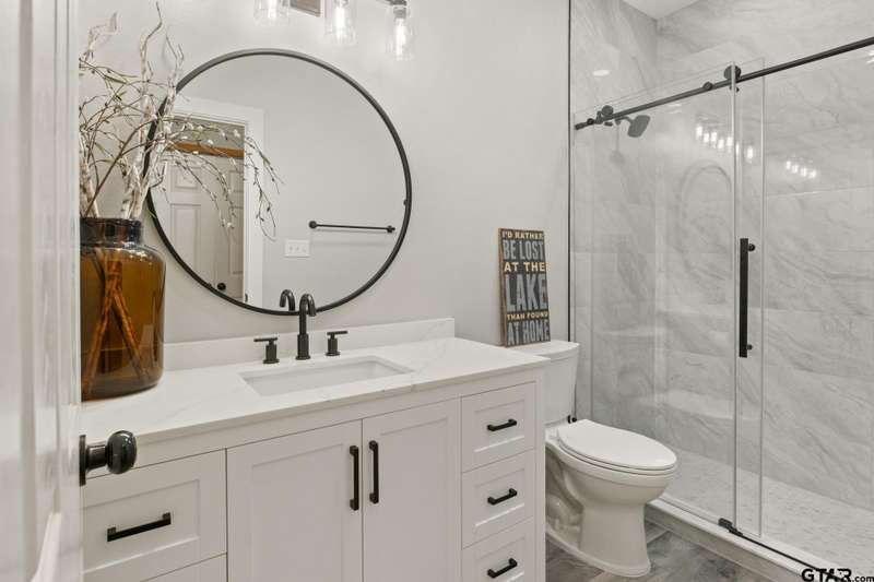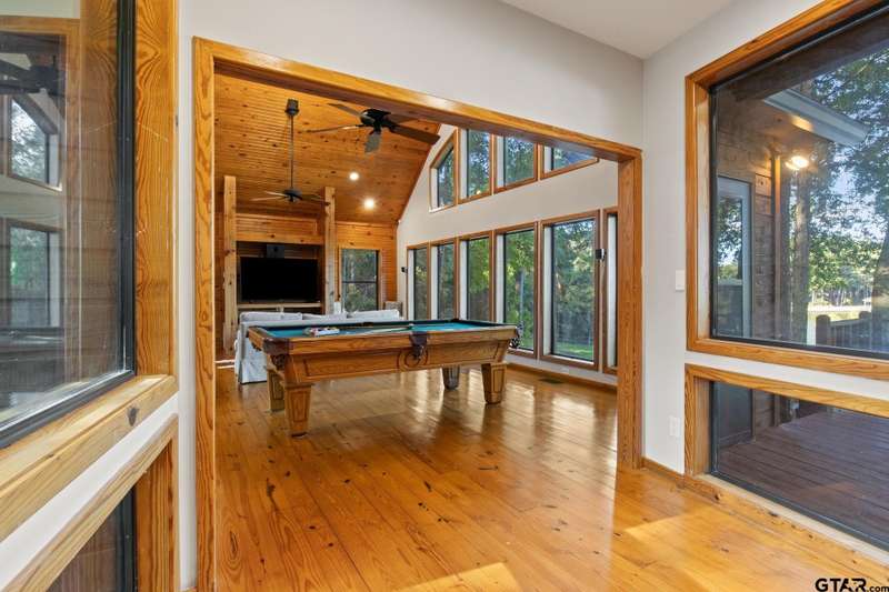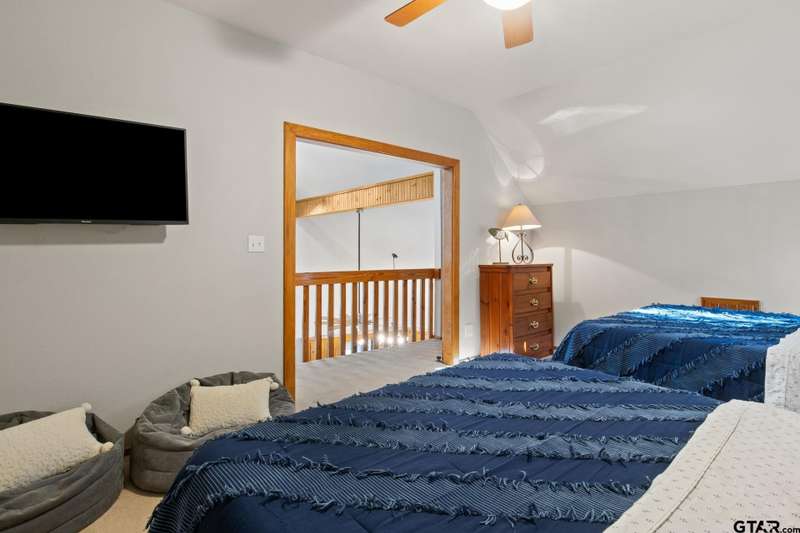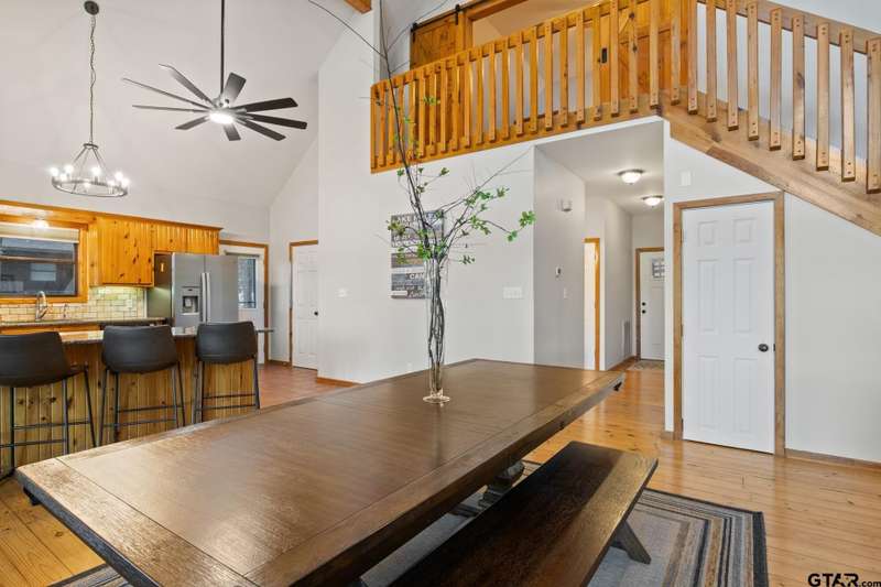 Escape to your very own Lake Cypress Springs paradise with this luxury lakefront property situated on TWO spacious lots, totaling over 1 acre of prime real estate and offering potential for adding a garage or guest home. Located in the coveted Eagle Point subdivision and with many updates, this cozy home offers a blend of modern elegance and rustic serene lakefront living. Step inside to discover a sunlit open living and dining area that effortlessly flows into a chef's dream kitchen featuring an oversized breakfast bar and granite countertops. The primary suite is a true sanctuary with a private ensuite bath and stunning natural light. With an additional guest room downstairs, large loft with beds and full bath, and a game room for entertainment, there's a place for everyone to enjoy. Outside, the expansive porch among towering trees, offers ample space for gatherings while overlooking the water. The boathouse is equipped with a personal watercraft lift, boat lift, and extra slip, providing the ultimate convenience for all your water adventures. Embrace lake life at its finest in this remarkable property.