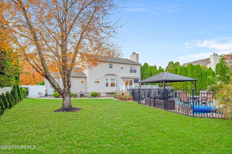Welcome to your dream home! This stunning well-kept 4-bedroom, 2.5-bath residence blends modern comfort with timeless style. Enjoy luxury plank floors, crown molding, and a newer kitchen with quartz countertops, an island, tile flooring, and double ovens. Entertain in style! This tastefully decorated finished basement offers an office, bar, recessed lighting, and half bath. Outside, relax in your private fenced yard with a 14x14 Trex deck, SunSetter retractable awning, and a sparkling saltwater pool with newer liner and heater. Added features include a two-car garage, newer roof, in-ground sprinklers, and well pump. This move-in-ready home truly has it all!