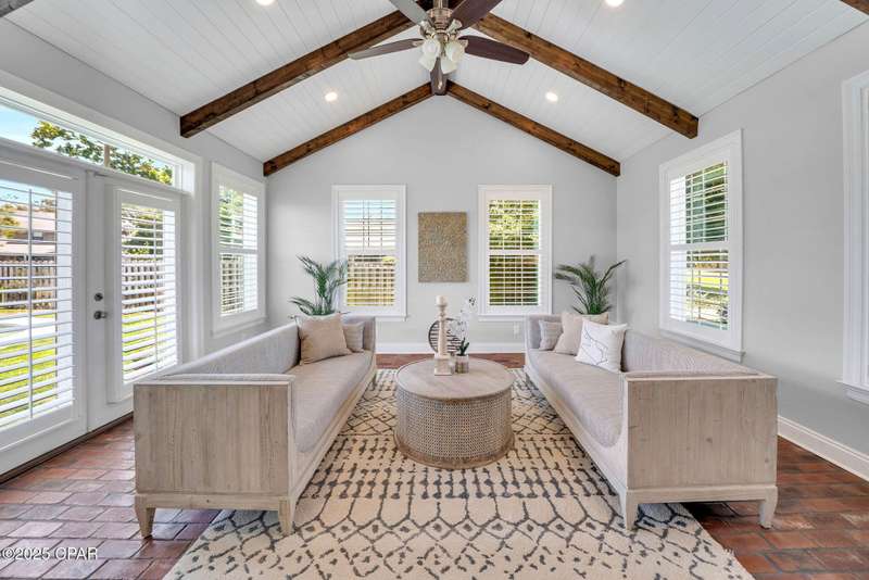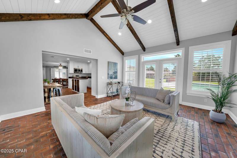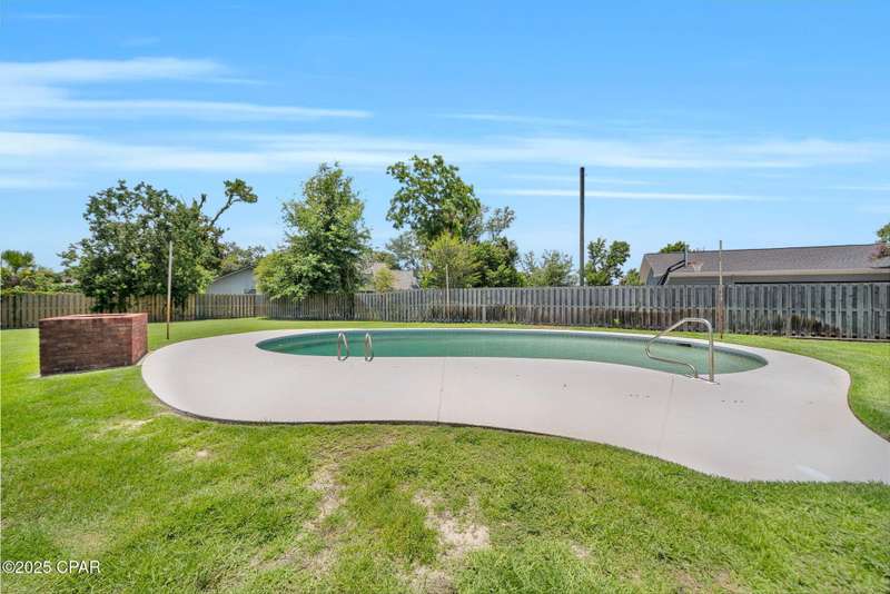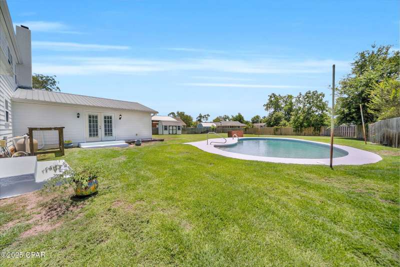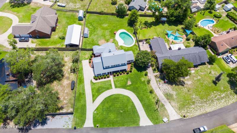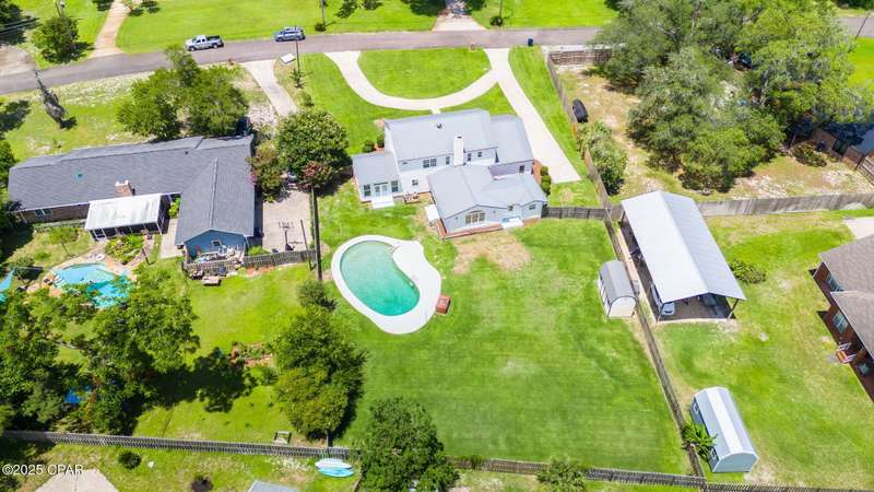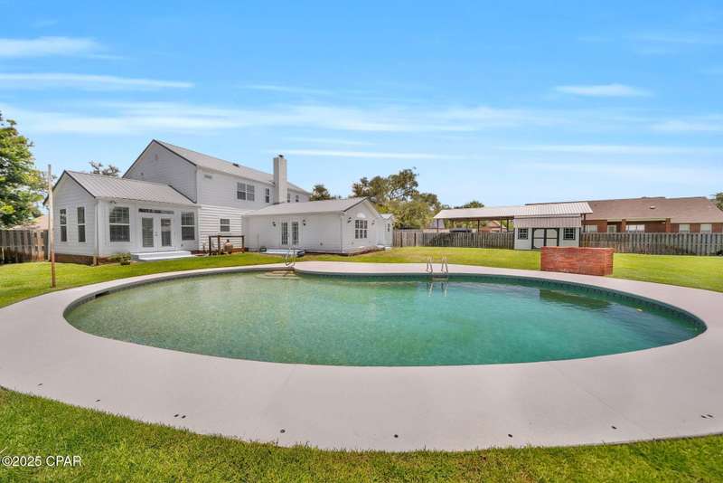 Discover the charm of coastal living in this spacious 3-bedroom, 3.5-bathroom home nestled in the desirable Robinson Bayou neighborhood of Kings Point. Sitting on over half an acre, this beautiful property offers comfort, space, and amenities for the whole family.Step inside to find a flowing open floor plan featuring a large living room with a cozy fireplace, a dedicated dining area, and an open concept kitchen perfect for entertaining. Enjoy bonus spaces like a playroom and a sunny Florida room overlooking your private backyard oasis.The oversized master suite boasts a double vanity, shower/tub combo, and a walk-in closet with direct access from the en-suite bathroom.Outside, unwind on the covered porch or take a dip in the sparkling pool surrounded by lush landscaping. A storage shed, attached 2-car garage, and a circular driveway complete the exterior, offering plenty of parking and utility space.Don't miss your chance to own this rare gem in one of Panama City's most sought-after neighborhoods!
