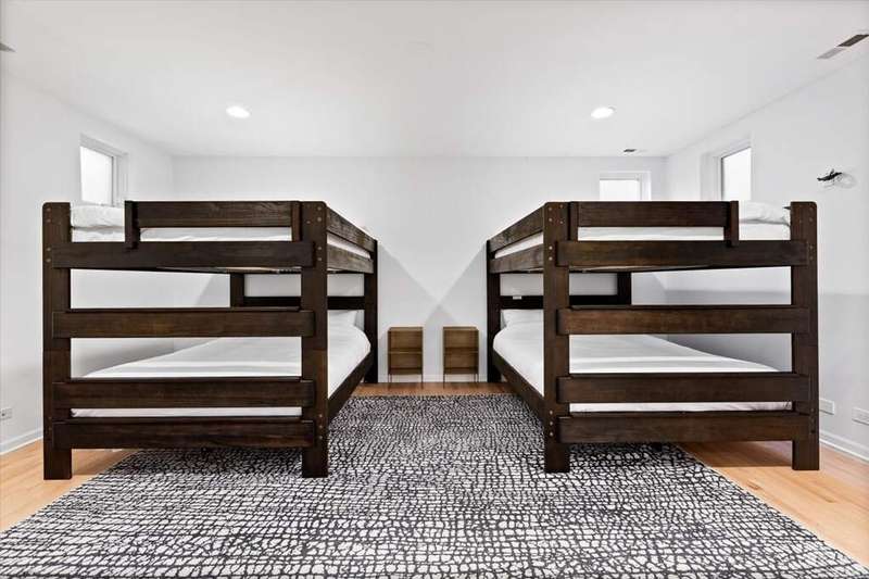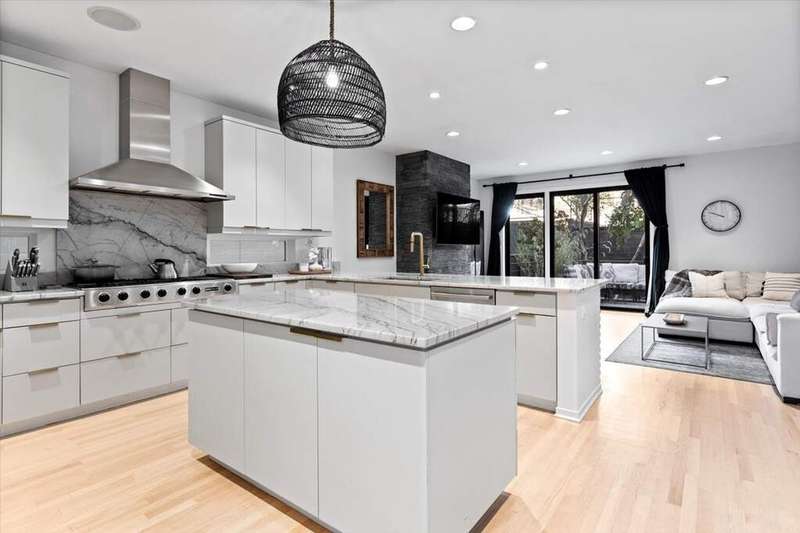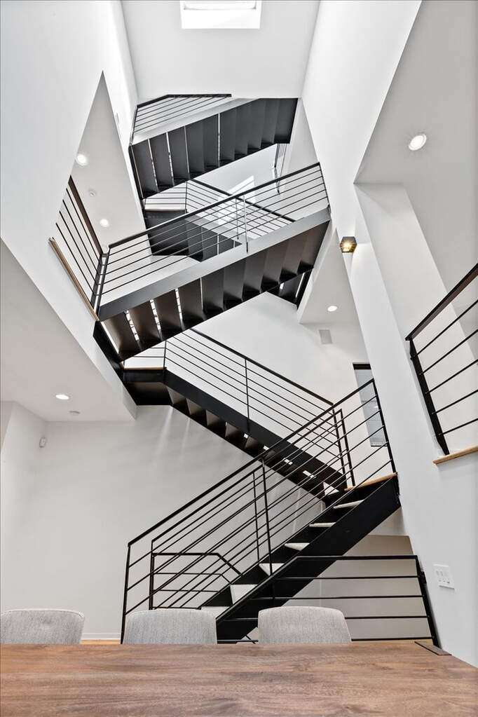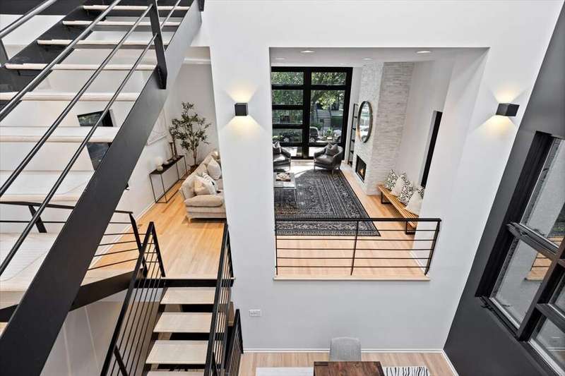 Wonderfully modern, six bedroom home in the perfect Bucktown location! This unique floorplan allows for light to flood the entire home and offers architectural details everywhere. At the front of the home is a secluded office and powder room with a formal living room above that overlooks Winchester with floor to ceiling windows. The main level has a large dining room with a huge skylight stories above, an updated kitchen with quartzite countertops and a full wet bar, and a spacious family room at the rear of the home where you can step outside directly at grade to a multi-level outdoor space. One level up is a huge primary suite that includes a fully renovated bathroom with separate shower and tub, double vanity, heated floors, and more. Additionally enjoy a balcony, three closets including two full walk-ins. The next bedroom is the perfect guest suite with an on-suite bathroom, followed by two more bedrooms and side by side laundry. The stairs take you up to the roof where there is the opportunity to build out a roofdeck with great city views. The lower level includes a large recreation room and huge bedroom with an on-suite bathroom or place to create an incredible home gym. This location can't be beat and is walkable to everything Bucktown and Wicker Park offer, the 606, shopping, dining, Churchill Park and the Blue Line!