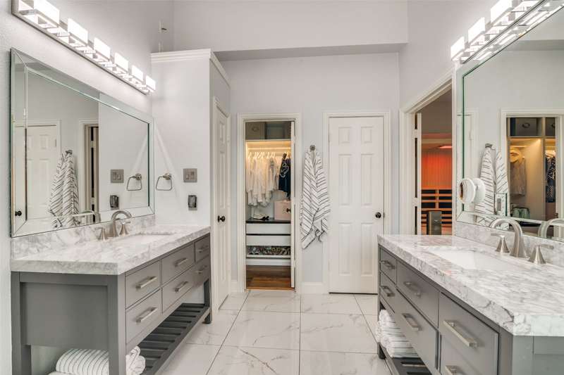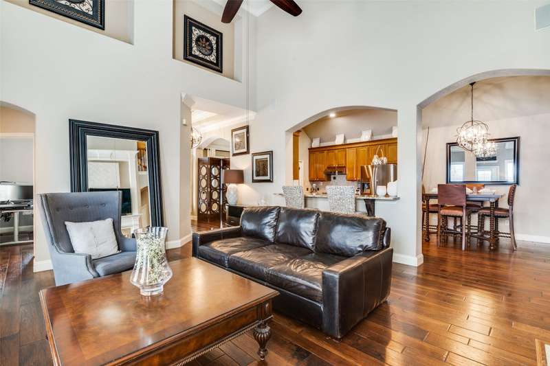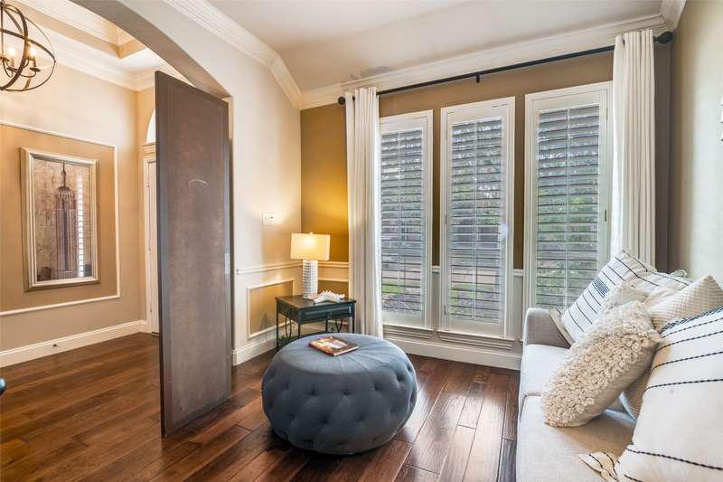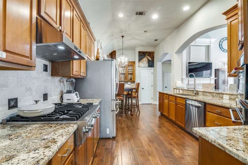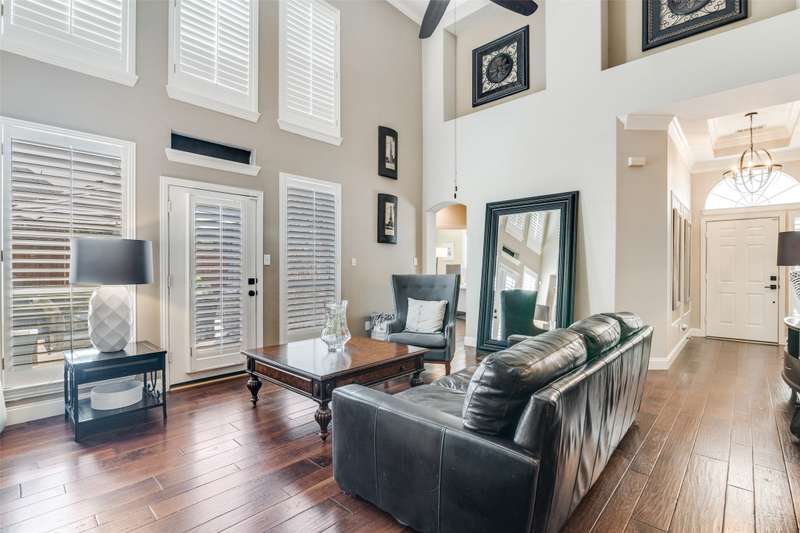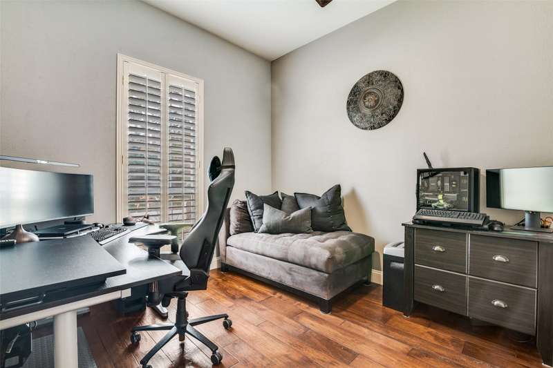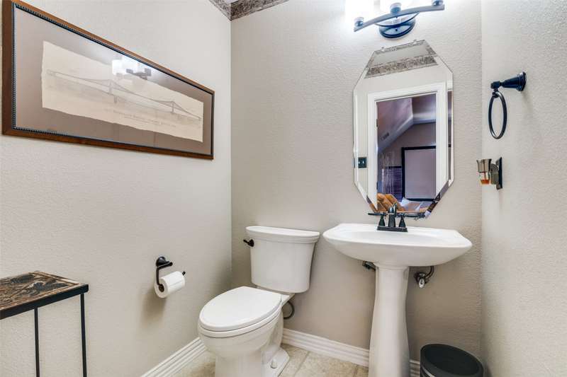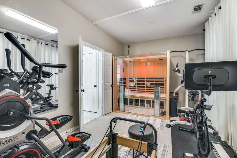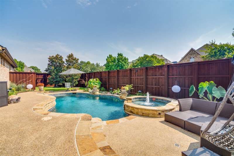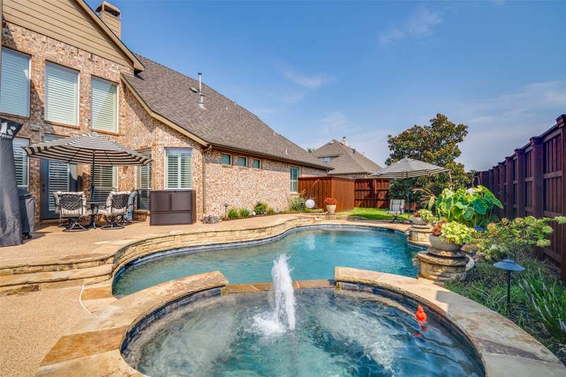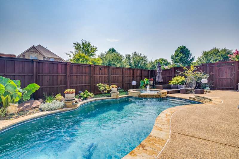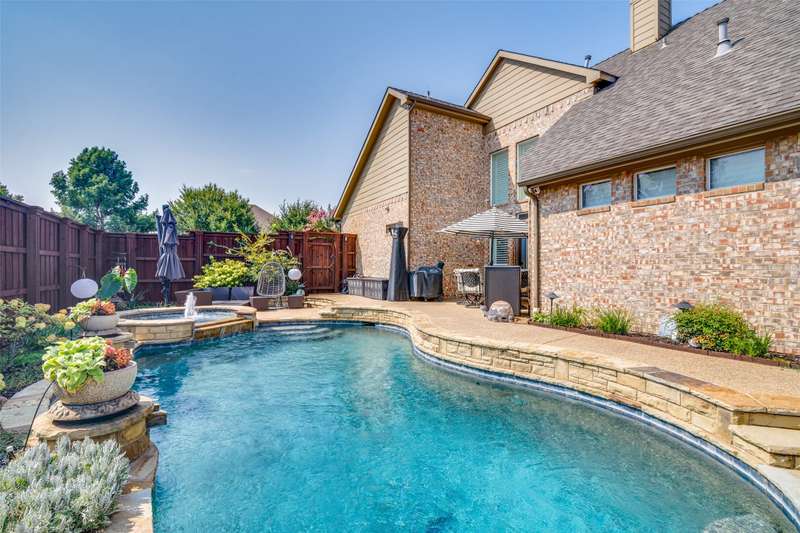 When asked the owner what they will miss most & what they love the best about their home they answered...EVERYTHING....*You will know what they mean when you drive up and walk thru the front door*Nestled in the heart of Stewart Crossing Subdivision in Southwest Frisco, just minutes from The STAR, Stonebriar Center & Dallas Tollway*Built in 2001 but shows like a model home*Beautiful landscaped corner lot* Front living area can be formal living or formal dining * Light and Bright living area with fireplace and many windows overlooking fabulous inground pool and spa with water features that will invite Year Round Enjoyment and Entertaining*Split secondary bedrooms share full bath*Large Master Bedroom with fabulous En Suite bath that is a must see & flex Room off of the master bath is being used as a home gym complete with a Sauna* Upstairs area with half bath is versatile room that can be used as game room, media room, home office or whatever fits the new buyers lifestyle*Plantation Shutters*Wood flooring*Zoned Heat and AC*Roof approximately 8 years old*Sprinkler System*