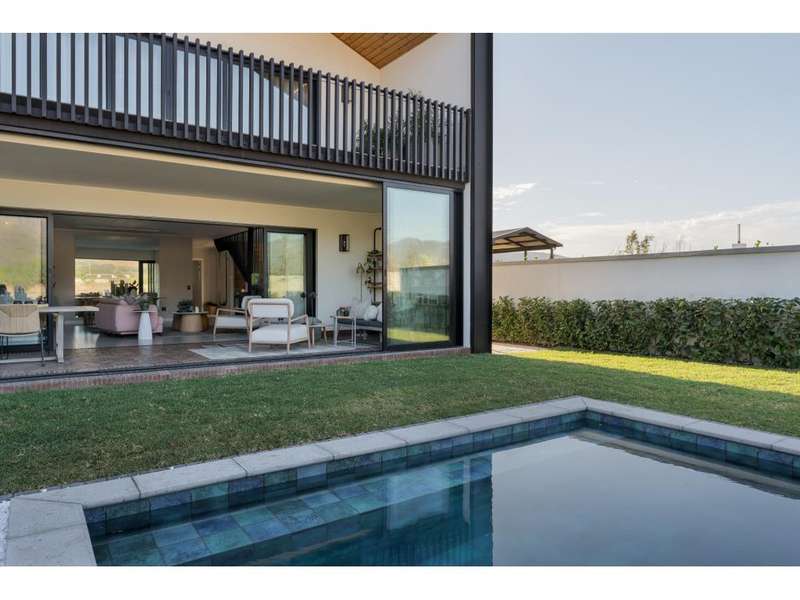 This remarkable Lifestyle Estate is available for viewings, daily, and offers the unique chance to buy directly from the developer. Chas Everitt Luxury Winelands is proud to showcase Drakenzicht Estate. Set in the most picturesque area of the Cape Winelands, Drakenzicht Estate exhibits a refined design and top notch security features. This modern home covers an area of 280 square meters and includes three bedrooms with three and a half bathrooms, epitomizing luxury through its elegant aesthetics, generous layout, and seamless integration of indoor and outdoor living spaces. Strategically situated near Paarl?ÇÖs world renowned schools, fine dining restaurants, and elite shopping destinations, Drakenzicht Estate is an ideal choice for families seeking a luxurious lifestyle in one of the most scenic areas of the Winelands. With an Edge Advanced certification from the GBCSA, the estate guarantees a minimum of 40% reduction in energy and water usage while utilizing eco friendly materials. This stunning home features Oggie hardwood flooring, Stephen Pikus lighting over the kitchen island, an 8 kVA inverter accompanied by solar panels and batteries, Smeg kitchen appliances, a welcoming wood burning fireplace, a swimming pool, and energy efficient Samsung air conditioning. Enjoy peace of mind with superior security measures, including AI facial recognition, motion sensor CCTV, electrified fencing, and armed drone surveillance. Enhance your wellbeing with access to the lifestyle and sports center, which includes facilities such as a 25 meter swimming pool, a yoga and pilates studio, and a fully equipped gym. Seize this chance to invest in a home that will leave you with unforgettable memories for you and your family.