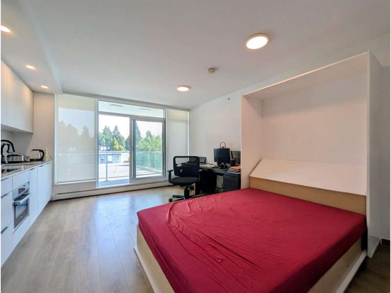 Live at Georgetown by Anthem, a 10-acre master-planned community, & enjoy high-quality construction in Surrey centre, conveniently located across from Central City Shopping Centre and just 6 min walk to the SkyTrain station. This cozy, well-laid out studio features a simple but perfect floorplan incl a built-in wall bed, paneled European stainless steel appliances and fixtures, quartz counters & and a huge 107sf balcony with an open east-facing exposure. Georgetown offers concierge service and an amenity pavilion w/ gym, yoga studio, indoor/outdoor lounges with theatres, co-work spaces, study rooms, games room, dog run, & a beautifully landscaped terrace. Includes 1 storage locker and remainder of 2-5-10 year warranty. (id:58403)