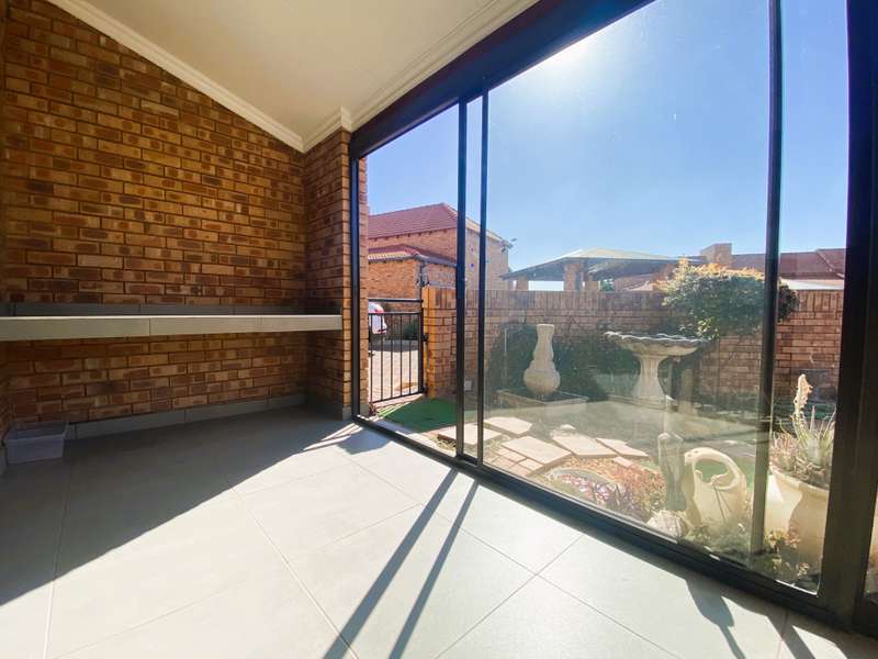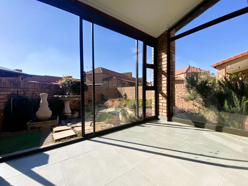 On Show By Appointment // Kindly contact agent to confirm a viewing time. This beautifully designed home situated in a popular retirement village with frail care and assisted living facilities, offers the perfect blend of comfort, style, and easy living. The open-plan kitchen and living area flow effortlessly to the enclosed patio and neat, private garden—ideal for relaxing or entertaining. The well-appointed kitchen provides ample cupboard space and room for all your appliances. All three bedrooms are generously sized with plenty of built-in cupboards. The bathrooms are modern and neat: the main en-suite features a bath, toilet, and basin, while the second bathroom offers a shower, toilet and basin. The unit has an automated garage with direct access to the house, additional parking for a second car in front of the garage and ample visitors parking in close proximity to the unit. Additional features include: Solar system with 6 panels, two batteries and inverter. Borehole Aluminium door- and window frames Fibre DSTV available 24-hour gated security Community centre and restaurant where residents can enjoy their meals, socialize, visit the library and enjoy the social activities the centre has on offer. Frail-care and assisted-living facilities Enjoy secure, low-maintenance living in this popular retirement community!