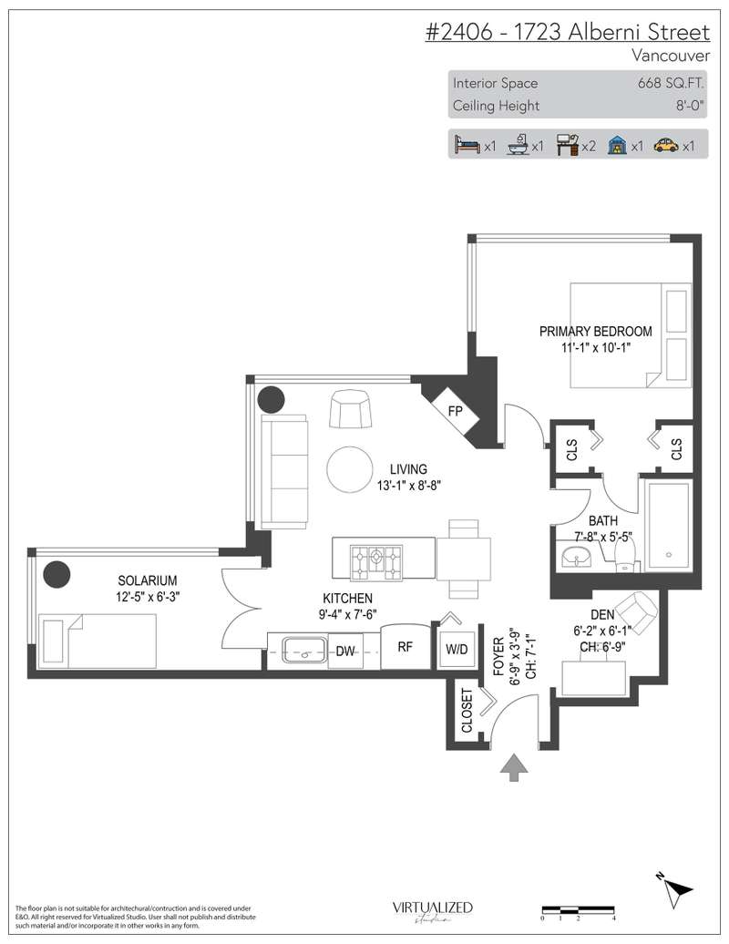 This sub-penthouse at The Park building offers stunning expansive Water, North Shore mountain, Coal Harbour, Lost Lagoon, Stanley Park and city views from every room. Floor to ceiling windows provide lots of natural light. This home comes with AC, a private single car gated garage with a storage room. Functional layout with 1 bedroom + den (that can be a guest bedroom) + office. Conveniently located in the Westend/ Vancouver Downtown area just steps away to Seawall, Stanley Park, restaurants, cafes, shops on Robson Street and recreation.