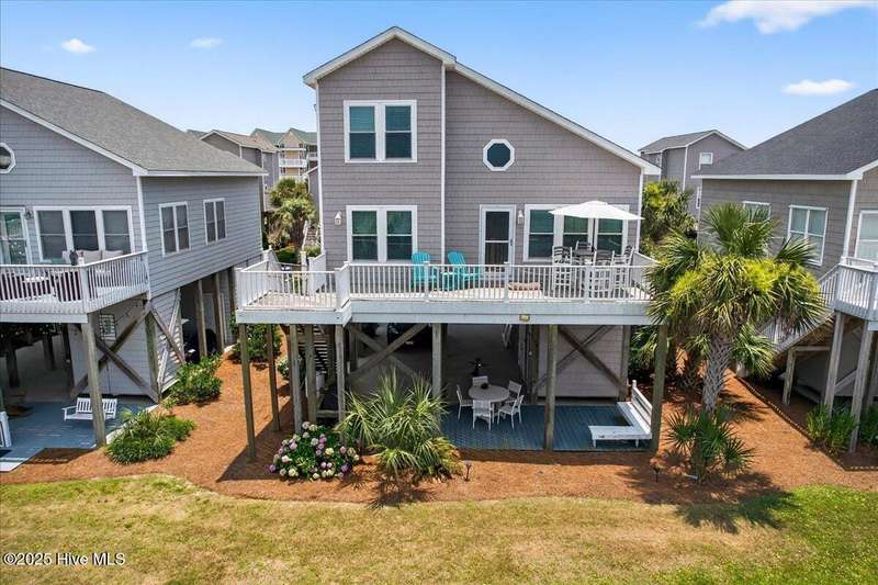 This beach cottage situated in the western end of Ocean Isle & in the desired community of Island Park is all about location & upgrades. This four bedroom home has a large deck with expansive views overlooking a lagoon with a fountain, the perfect place for outdoor enjoyment & viewing wonderful sunsets & wildlife. Front of house has an extended porch for enjoying ocean breezes. Expansive ground level area with patio seating, under the house parking & an exceptional storage area including outdoor shower & dressing area (35 ft by 9.5ft.) adds to the enjoyment of being at the beach. What a collection of ''toys'' one can store! This second row in Island Park is a quick walk to the beach. Minimal exterior maintenance with vinyl siding & vinyl deck railings front and back. Upgrades in this home include a gas fireplace surrounded by built in bookcases, wood flooring in all four bedrooms with the balance of the home tiled. Did I mention that two of the four bedrooms have wonderful lagoon views? Two bedrooms offer king size beds & a third bedroom perfect for the family with a trapeze bunk. A double tiled walk in shower graces the second floor bath. Stainless steel kitchen appliances, granite counter tops in a kitchen highlighted by a ceramic tile backsplash & nice bright white cabinetry. Two HVAC units in 2023, washer is 2023, deck furniture 2022; stove in 2022, refrig 2025; 30 Year Roof Nov 2025; living room sofas in 2022, & all bedrooms & baths freshly painted 2022. In the last approx five years new windows were installed, new decking, & plantation blinds, This home with vaulted ceilings in living & dining areas & numerous windows is an open floor plan with plenty of light. Your beach getaway feels ''so new''. Additionally the HOA takes care of the landscaping so no worries..just come to the beach and enjoy. Two outdoor swimming pools & two Soundside day docks to access ICW for additional fun in the sun!. Beautiful white beaches & plenty of things to do nearby