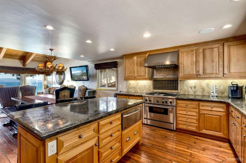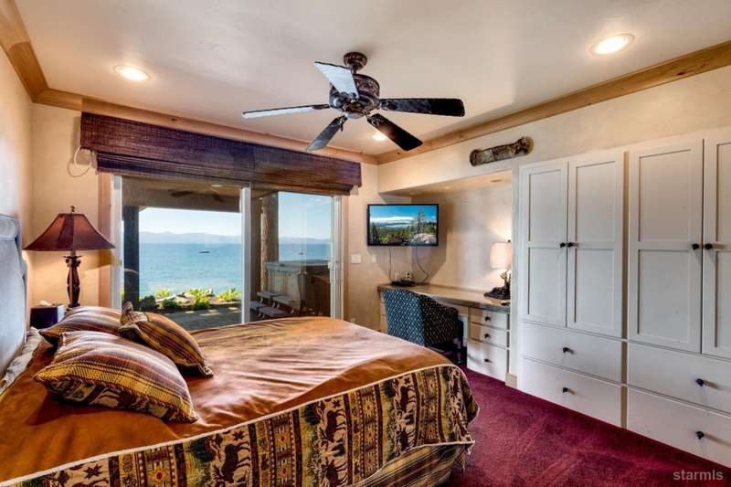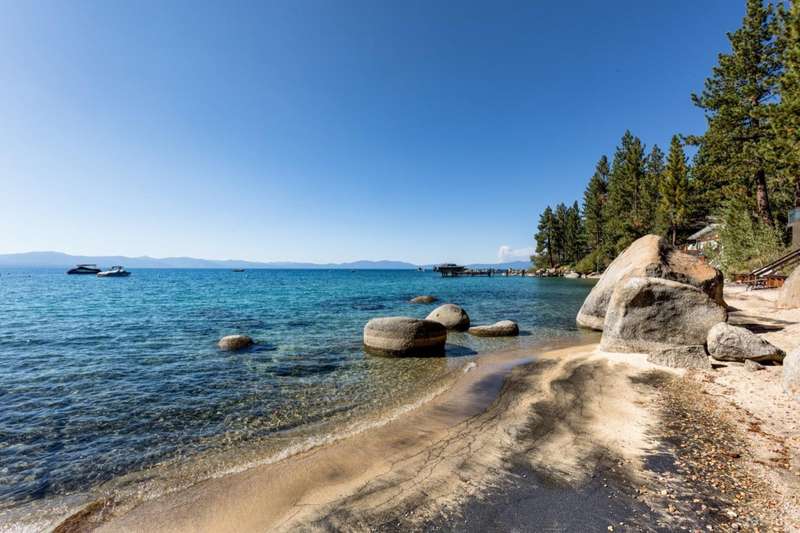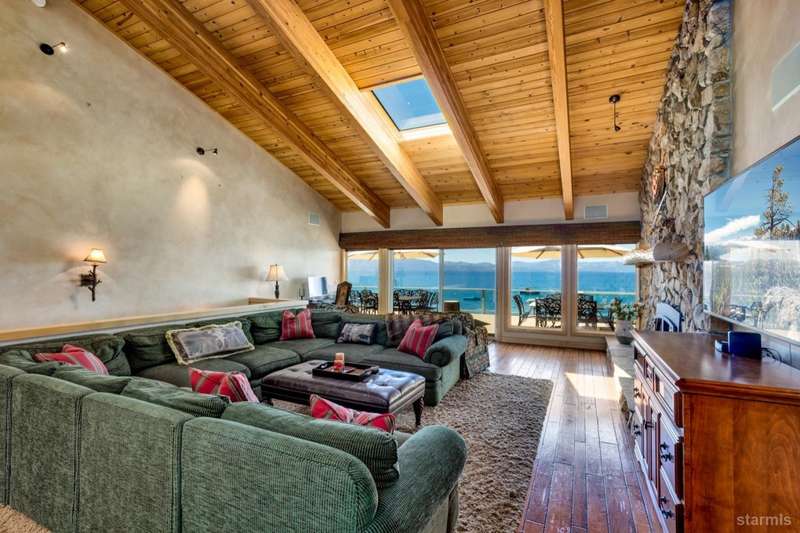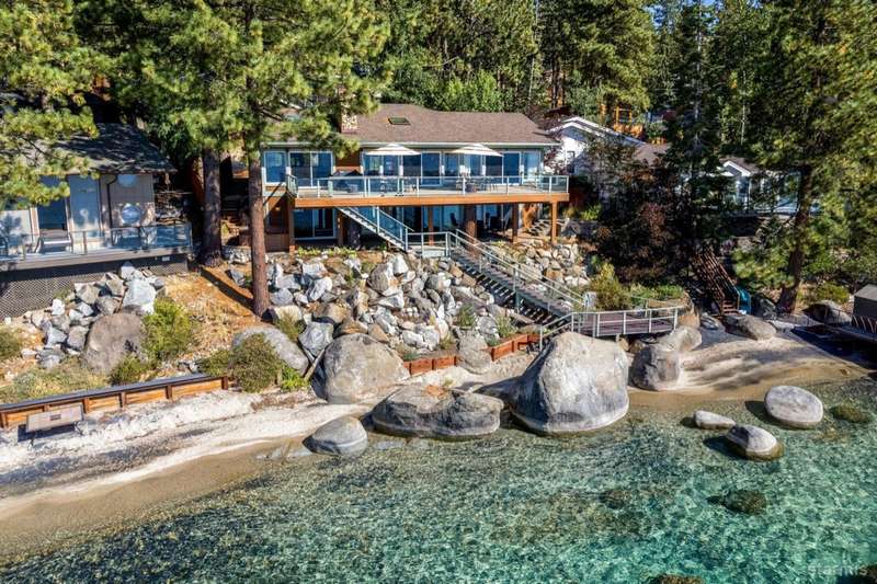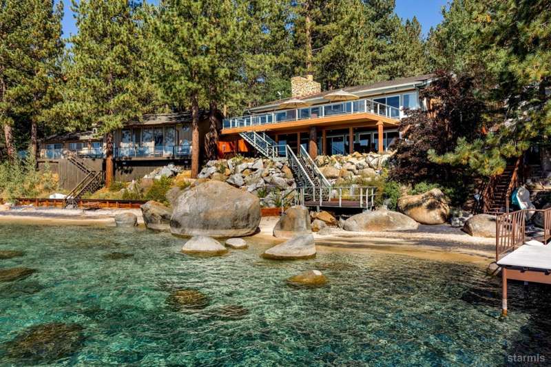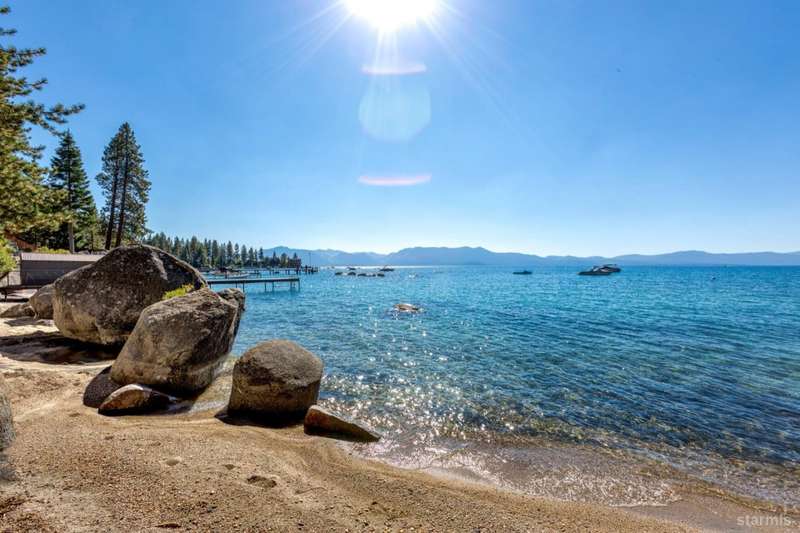 Experience unparalleled luxury with this stunning 4,113 sq. ft. lakefront residence in the prestigious Skyland community of Lake Tahoe. This exceptional home boasts breathtaking, unobstructed views of Lake Tahoe, a private sandy beach, and a permitted boat buoyall set within a beautifully landscaped garden with lush greenery and serene outdoor spaces.Designed for sophisticated main-level living, this home features a same-level primary suite with panoramic lake views through expansive wall-to-wall windows and direct access to a the waterfront deck. Radiant-heated walnut flooring extends throughout the formal living room, cozy family room, and adjoining lake-view kitchen, adding warmth and elegance.The gourmet kitchen is a chef's dream, outfitted with high-end Thermador appliances and a Sub-Zero refrigerator. Beautiful granite countertops, light alder cabinetry, and custom built-ins complete this exceptional space. The open-concept design flows seamlessly into three separate living areas, including a spacious game room with a full wet barperfect for entertaining and enjoying time with family and friends.Three of the five bedrooms offer stunning lakefront views and direct access to the outdoors. Expansive decks and a large patio provide generous space for al fresco dining and sunset gazing. A lakeside BBQ deck enhances the outdoor living experience, while a private stairway offers easy access to the sandy beach and buoy, making lakeside enjoyment effortless.First-class design elements throughout include open beam ceilings, skylights, pine vaulted ceilings, and electronic shades, all contributing to the home's rustic yet luxurious charm. The oversized 2-car garage, complete with extra storage space, adds practicality to this extraordinary property.#8232;Situated in the tranquil and exclusive Skyland community, this home is conveniently close to the renowned Edgewood Golf Course and the world-class Heavenly Ski Resort. Enjoy premier skiing, hiking trails, and the vibrant amenities of South Lake Tahoe, with easy access to dining, shopping, and entertainment options. Major highways and the Reno-Tahoe International Airport are also within reach.This exceptional lakefront retreat offers the perfect blend of luxury, comfort, and natural beauty. Don't miss your chance to own a premier property in Lake Tahoe. Schedule your visit today!