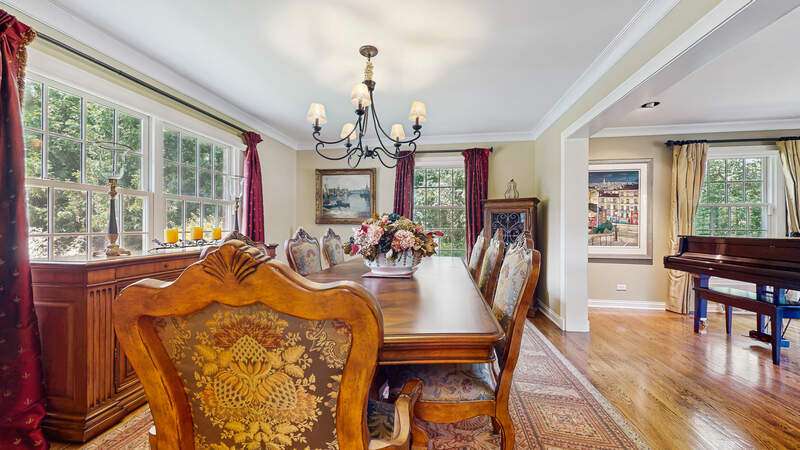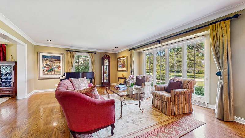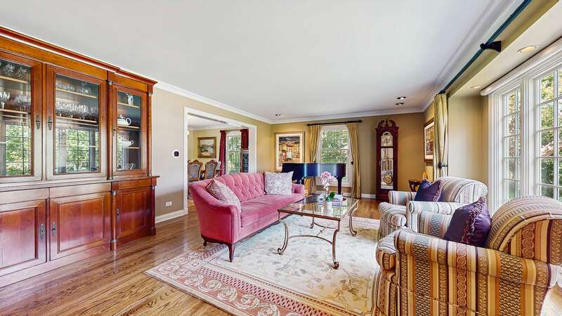 Comfortably ensconced on 1.36 acres in beautiful Lake Forest, this gracious home presents 5 bedrooms and 3.5 baths. Opening to an inviting marble foyer, it offers 12 well-proportioned rooms, the 1st floor including the living and dining rooms, a 1st floor office/bedroom as well as a thoughtfully designed kitchen which leads to a welcoming family room enhanced by a gas fireplace. The 2nd floor proffers the primary bedroom and three additional bedrooms. The attractive finished lower level provides great respite and entertainment as well as capacious storage. The attached garage and a new second garage present ample housing for 4+ cars. A new roof, new gutters, and new flagstone entryway further enhance curb appeal. Beautiful paver patios surround an inviting pool, encouraging relaxing views of the breathtaking landscaped grounds beyond. A wonderful offering!