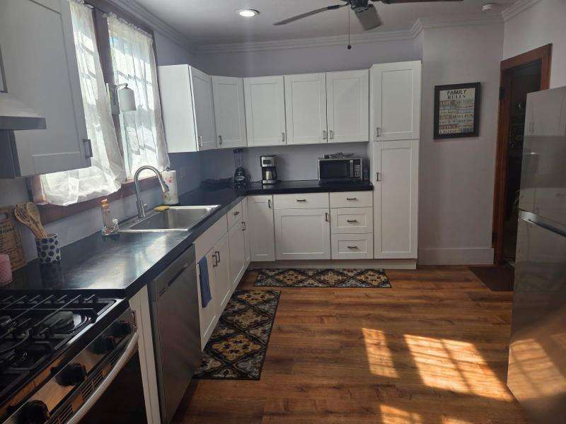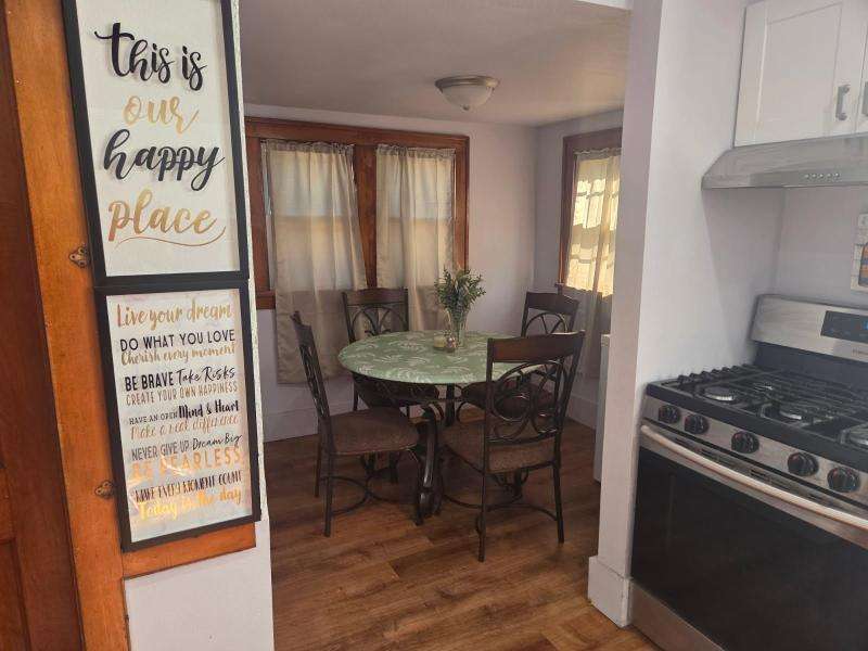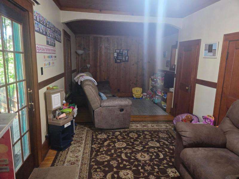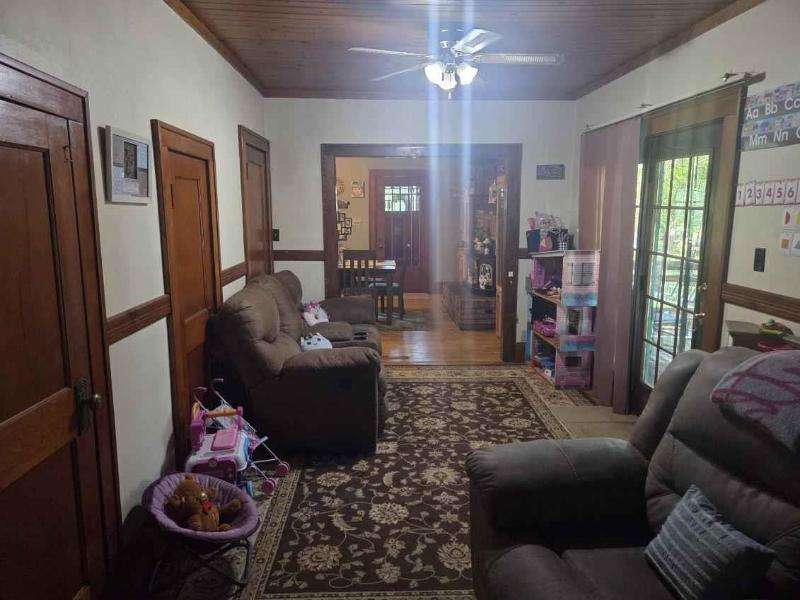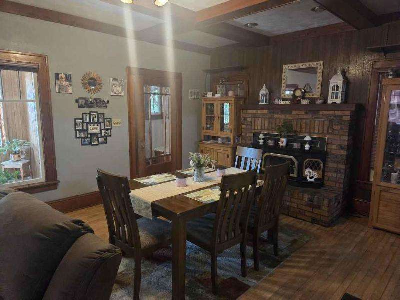 Step into the charm of yesteryear with this classic two-story, 3-bedroom, 1.5-bath home that beautifully blends old-world character with timeless comfort. From the moment you enter, you'll be greeted by the warmth of original hardwood floors that stretch throughout much of the home, lending a rich, inviting feel to each room. The spacious living area features a built-in bookcase--perfect for your personal library, treasured heirlooms, or modern decor,adding both functionality and a touch of vintage elegance. Upstairs, 3 bedrooms & full bath w/laundry. A convenient half-bath on the main floor provides added comfort for guests & everyday living.Whether you're drawn to its nostalgic appeal or see the potential to blend classic & contemporary style. Spacious deck at 2 car detached garage.