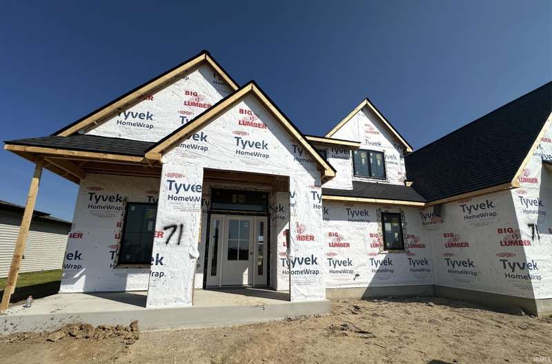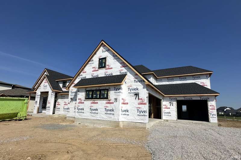 New Home Under Construction! Welcome to Cascata Estates, where timeless design meets everyday comfort. Scheduled for completion in early February 2026, this elegant two-story Modern Tudor style home combines balanced tones, striking curb appeal, and meticulous craftsmanship. Built by Bob Buescher Homes, a trusted custom builder since 1977, the design showcases exceptional flow, refined details, and enduring beauty. Offering 3,303 sq. ft. of living space plus a 903 sq. ft. three-car garage, this 4-bedroom, 3.5-bath residence sits on a premier lot with tranquil water views. A 14-foot foyer leads gracefully into the open-concept great room, where a cathedral ceiling with decorative beams crowns the space. A stone fireplace flanked by custom cabinetry anchors the room, while floor-to-ceiling windows frame the water and fountain beyond. Just off the great room, a spacious den provides a quiet home office or reading retreat. The open kitchen centers around a 5’ x 8’ quartz-topped island and includes quartz countertops on all perimeter cabinetry. A generous walk-in pantry with a 5’ cabinet offers a convenient coffee-bar option. The adjoining dining area opens through a 12’X8’ sliding glass door to a covered patio; ideal for entertaining or relaxed outdoor living. The main-level primary suite is privately positioned near the laundry room for everyday ease and features a spa-inspired bath with a zero-entry tile shower, dual quartz vanity, linen cabinetry, and a large walk-in closet. Off the garage entry, a mudroom includes a bench, coat closet, and guest half bath for added convenience. A striking switchback staircase leads to the upper level, where a spacious bonus room and versatile flex room provide perfect spaces for relaxing, entertaining, studying, or pursuing hobbies. Bedrooms 2 and 3 share a bath with a double vanity, while Bedroom 4 has access to a nearby full bath. Additional highlights include direct attic access, LVP flooring on the main level with carpet in the primary bedroom, plush carpet upstairs, zoned HVAC, irrigation system, tankless water heater, and water softener. Each home includes a 1-year express warranty on workmanship, 2-year mechanical coverage, and a pre-closing homeowner orientation. This home offers serenity, function, and the timeless craftsmanship of Bob Buescher Homes. Cascata Estates is ideally located near Bicentennial Woods and the Pufferbelly Trail, offering beautiful natural escapes just minutes from home.
